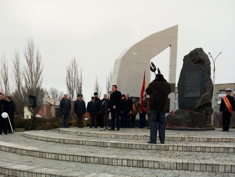 В торжественном мероприятии приняли участие глава города Ейска Валерий Кульков, депутат Законодательного Собрания Краснодарского края Виктор Дедешко, председатель райсовета Владимир Петров, председатель ейского отделения общественной организации «Интернационалист» Иван Кухта, председатель Ейского отделения «Боевого братства» Финат Шайхулин, председатель Щербиновского отделения «Боевого братства» Андрей Шпаковский, Финат Шайхулин, майор, военный лётчик 1 класса, ветеран боевых действий в Афганистане, Абхазии и Чеченской республике, участник операции по освобождению детей, захваченных вооружёнными террористами в городе Ростове на Дону в 1993 году. представители духовенства и воинских частей, студенты, кадеты, вдовы и матери погибших, сотрудники местного отделения ДОСААФ России Щербиновского района Краснодарского края. В память о них, а также обо всех, кто пал в Афганской войне, по инициативе клуба «Интернационалист» в городе Ейске 16 мая 1992 года был заложен монумент. Надпись у основания памятника гласит: «Поклянёмся, друзья, не забыть тех парней, тех, кто жизни отдал на афганской земле». Эти слова, высеченные на вертикально расположенном брусе чёрного мрамора. С каждым годом сюда приходит все больше людей, чтобы вспомнить всех тех, кто воевал в «горячих точках».