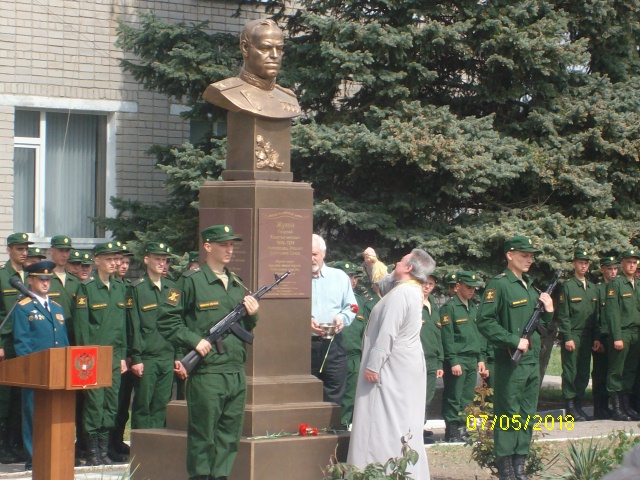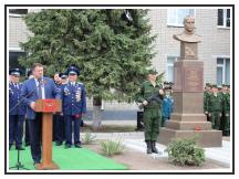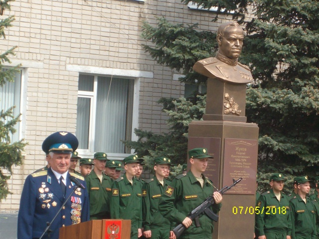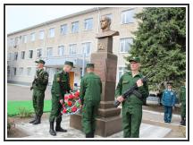 Собравшиеся возложили цветы к бюсту. Торжественным маршем военнослужащие учебного центра прошли мимо памятника великому полководцу, который является истинным примером мужества и героизма, стойкости и беззаветной преданности Отчизне. Теперь каждый, кто бывает в учебном центре, где чтут, уважают славные воинские традиции и, где существует их преемственность, будут не только знать историю части, но еще больше стремиться быть достойным памяти маршала Победы Жукова.