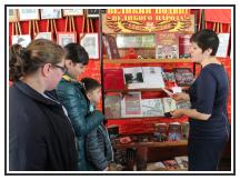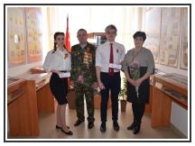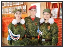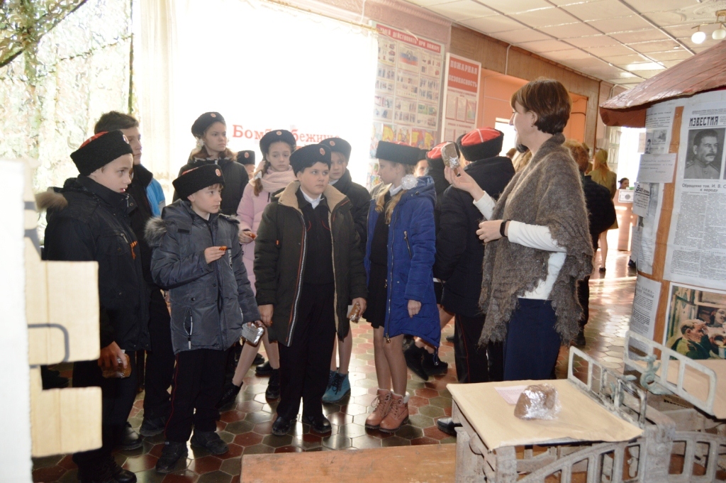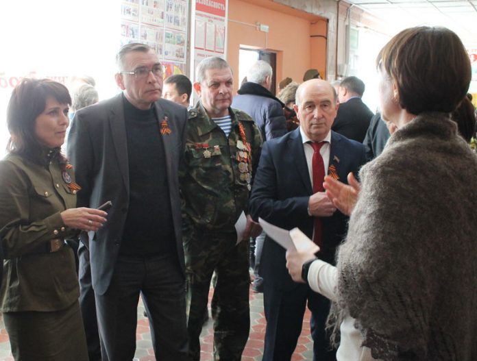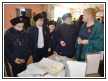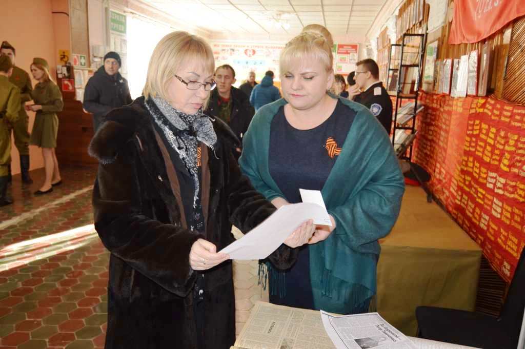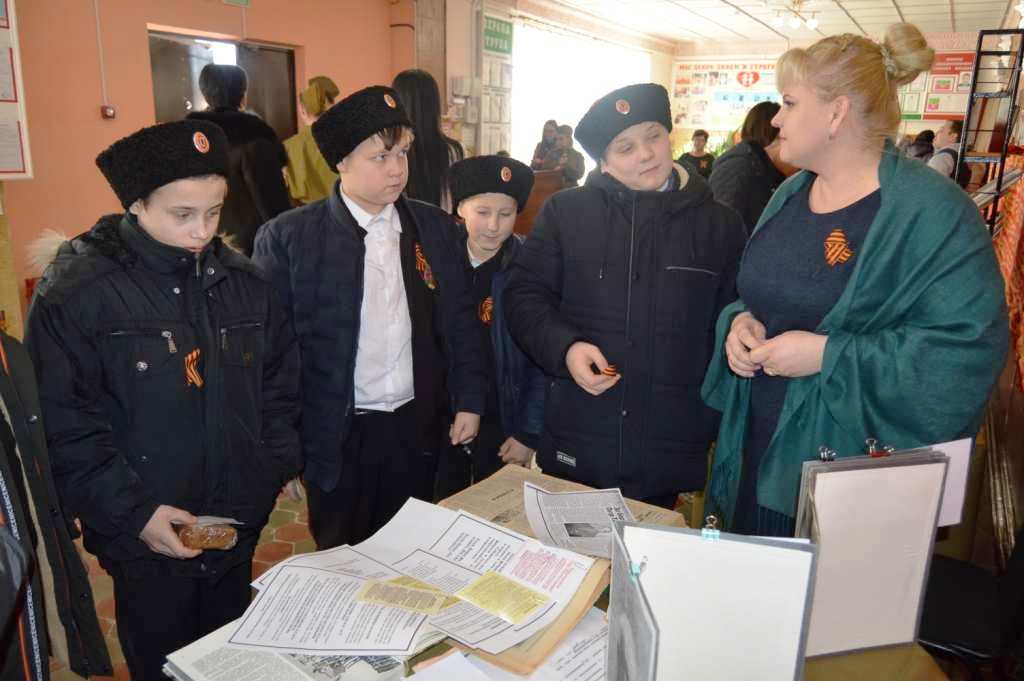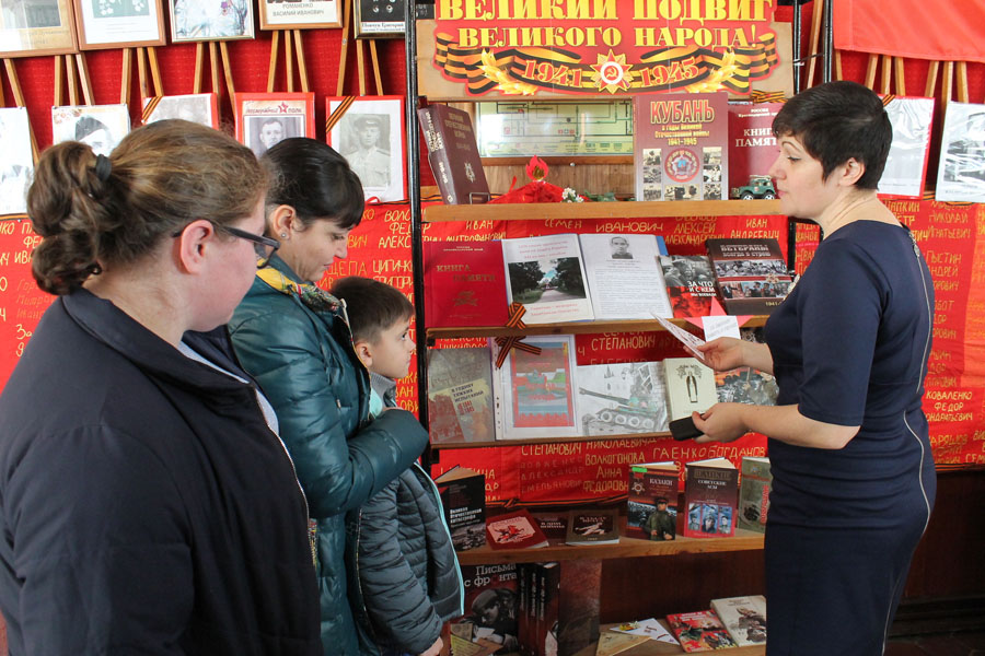 Антураж соответствовал теме события. Гостей праздника встречали подтянутые солдаты и солдатки, каждому входящему вручали георгиевские ленточки. Заинтересовали земляков расположившиеся в фойе учреждения инсталляция блиндажа, выставки военной литературы и документов той поры. Реалистичности им добавили исторические экспонаты настоящего оружия, предоставленного Местным отделением ДОСААФ России Щербиновского района Краснодарского края: винтовка Симонова, ручной пулемет Дегтярева, пистолет – пулемет системы Шпагина. Почетное место на стене заняли портреты щербиновцев – участников Великой Отечественной войны.