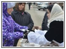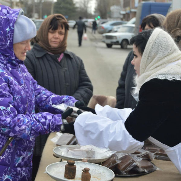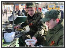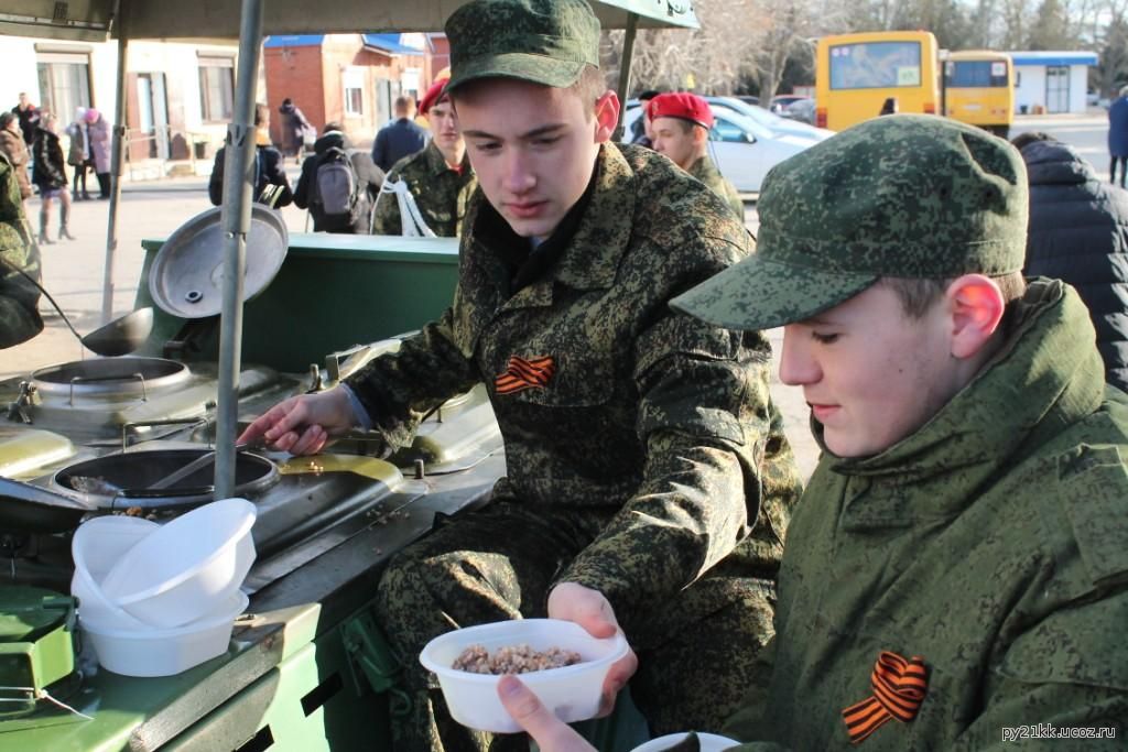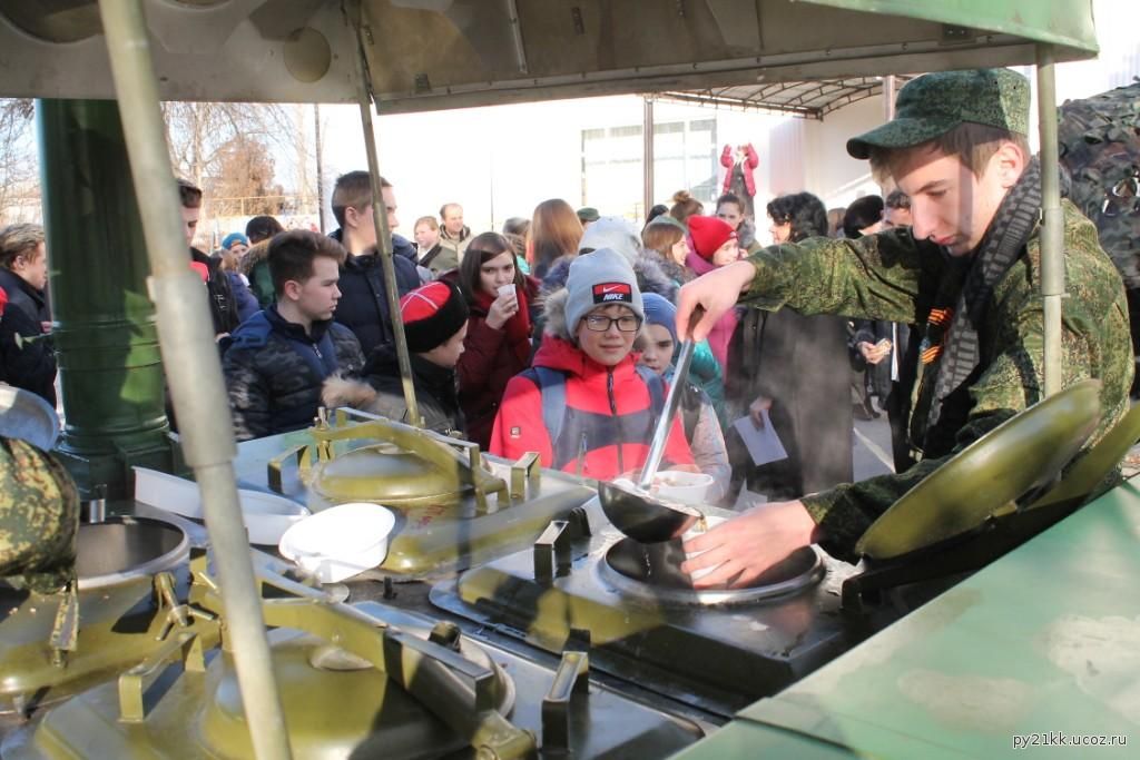 После концертной программы участников мероприятия угостили солдатской кашей и «блокадным хлебом» студенты Щербиновского индустриального техникума.