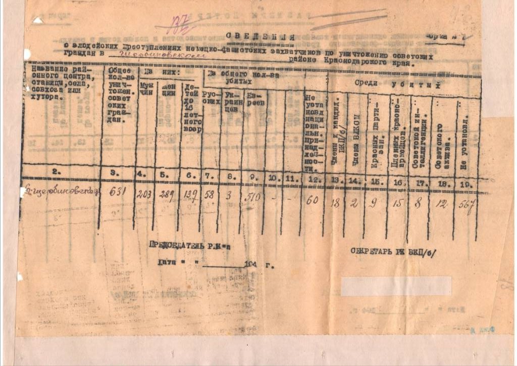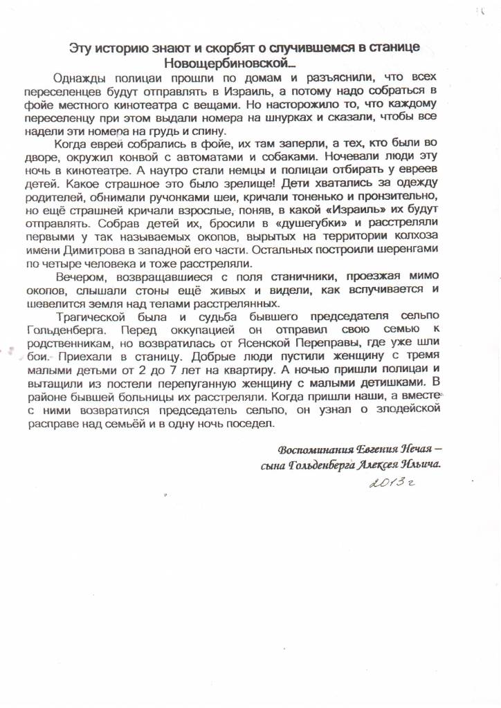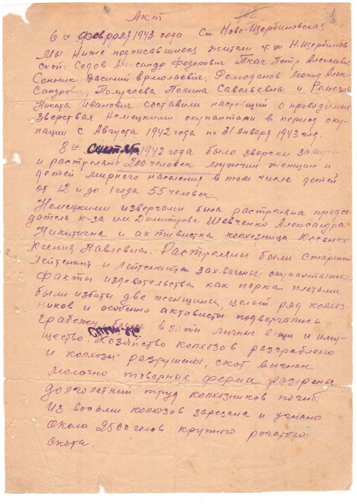 Информация предоставлена жительницей станицы Старощербиновской О.Л. Б., 1960 года рождения, по воспоминаниям своих родственников – очевидцев событий оккупации Щербиновского района.
