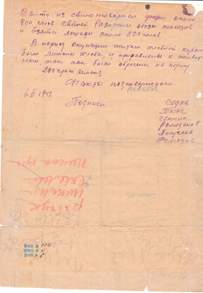 Житель станицы Старощербиновской Ш., 1936 года рождения: «…Когда в 1942 году немцы вошли в станицу, мне было 6 лет. Они заняли наш дом. Нам пришлось жить в сарае…
