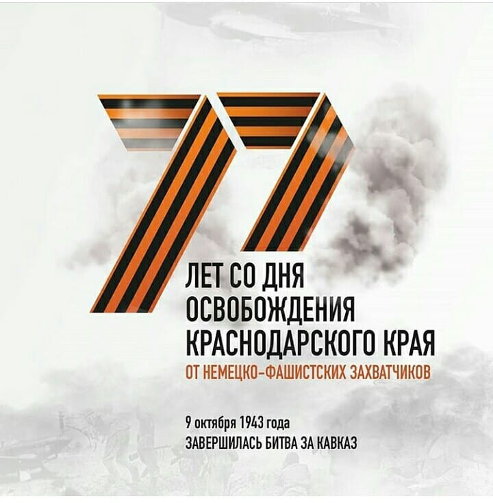 9 октября особый день в истории нашего региона – прошло 77 лет со дня освобождения Краснодарского края от немецко-фашистских захватчиков и завершения Битвы за Кавказ. В этот день в 1943 году войска нацистов полностью покинули территорию Краснодарского края.