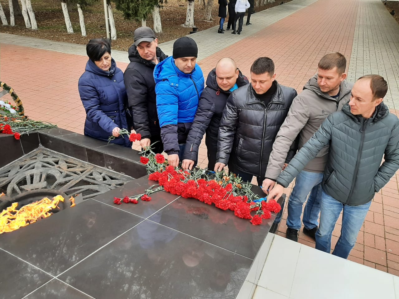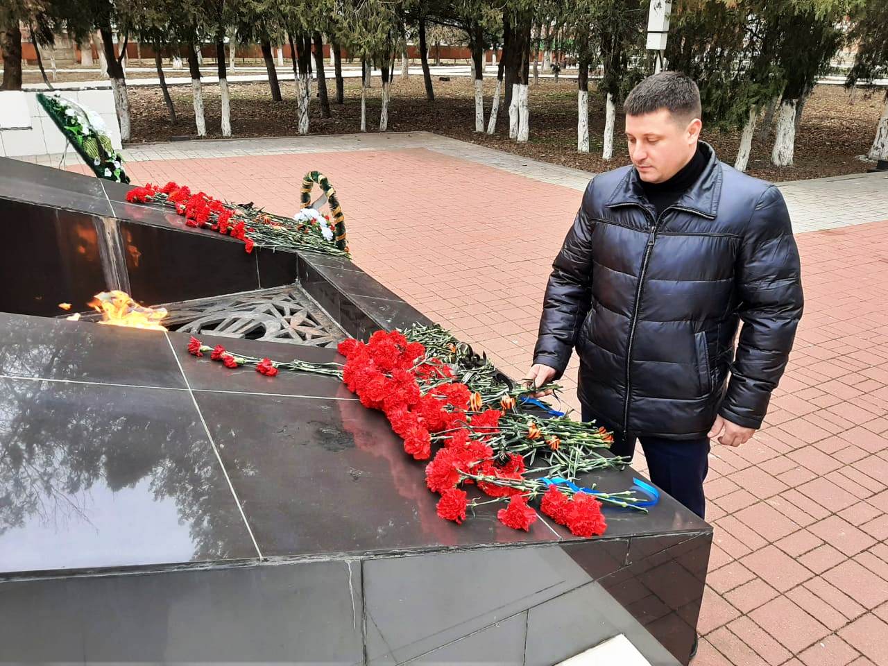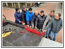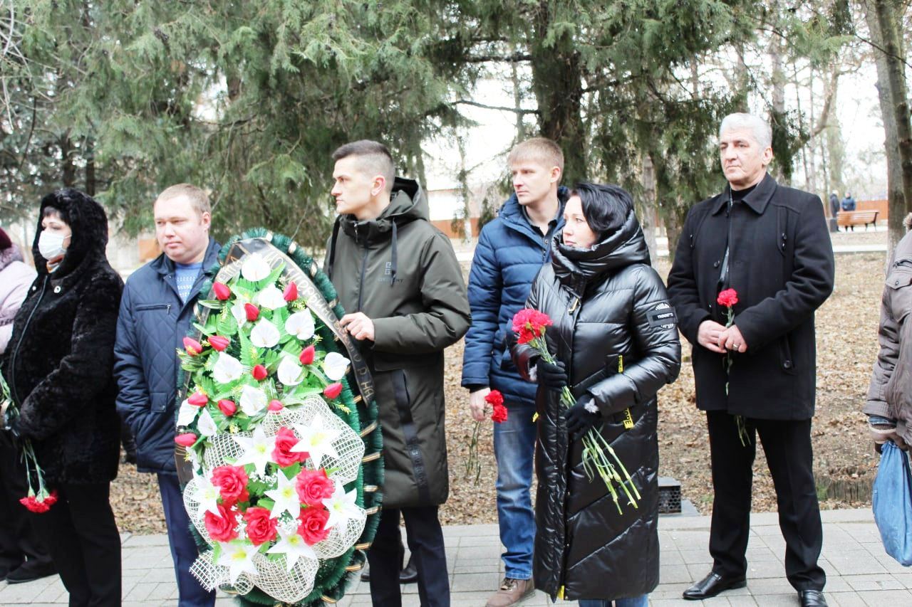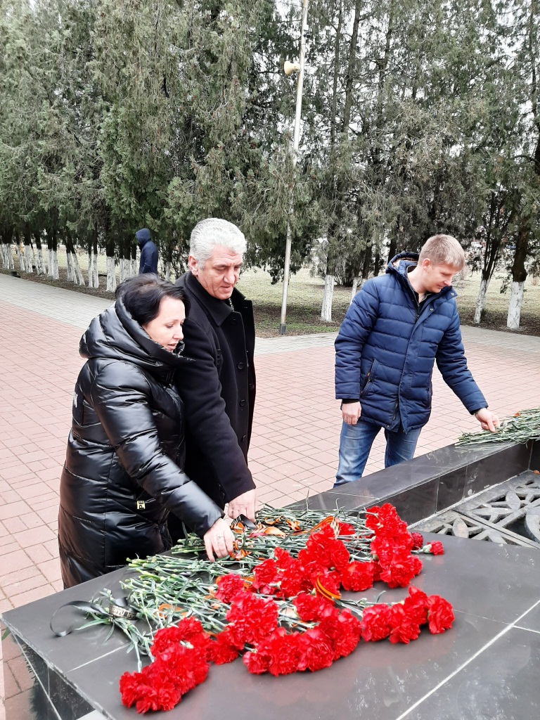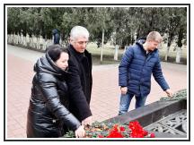 Продолжился митинг минутой молчания. В честь памятной даты присутствующие возложили венки и цветы к мемориальному комплексу.
