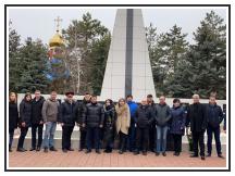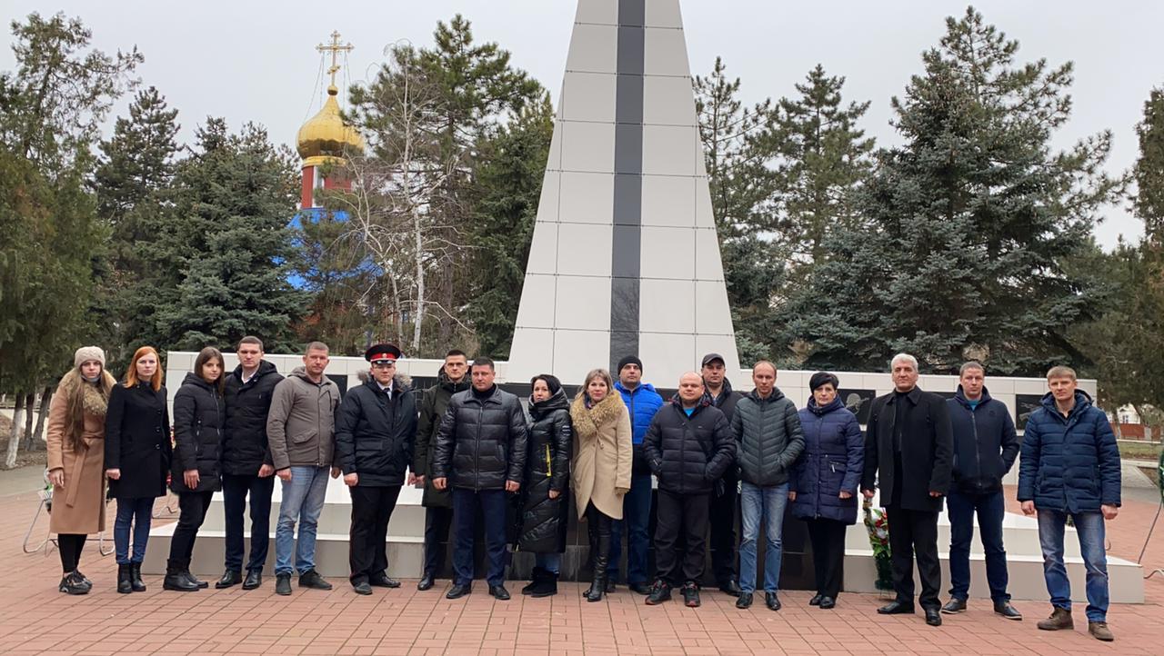 Под сопровождение Ейского военного духового оркестра колонна из сотрудников администрации, сельского поселения, предприятий и общественных организаций, учащихся общеобразовательных учреждений, жителей станицы прошла к мемориальному комплексу.