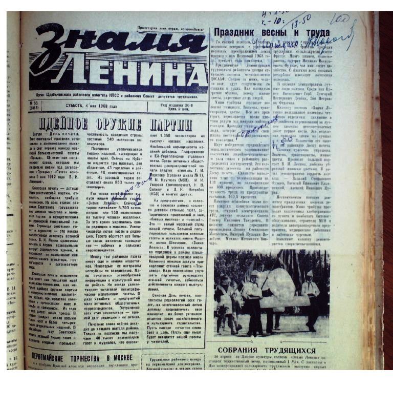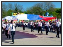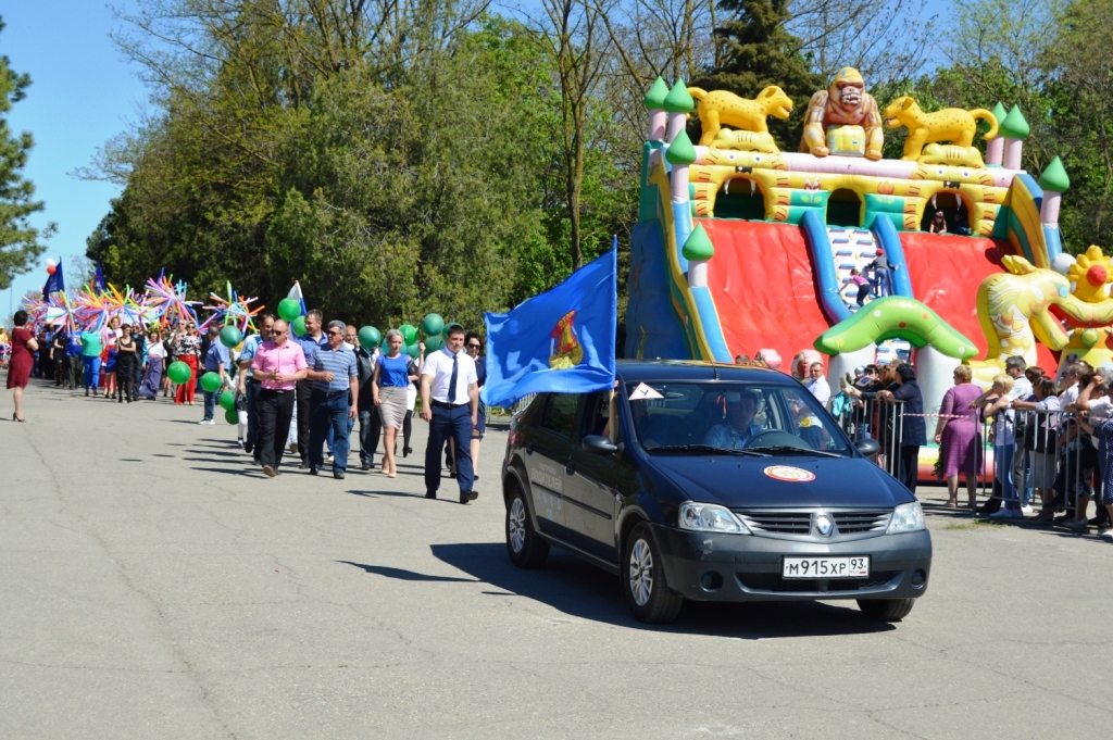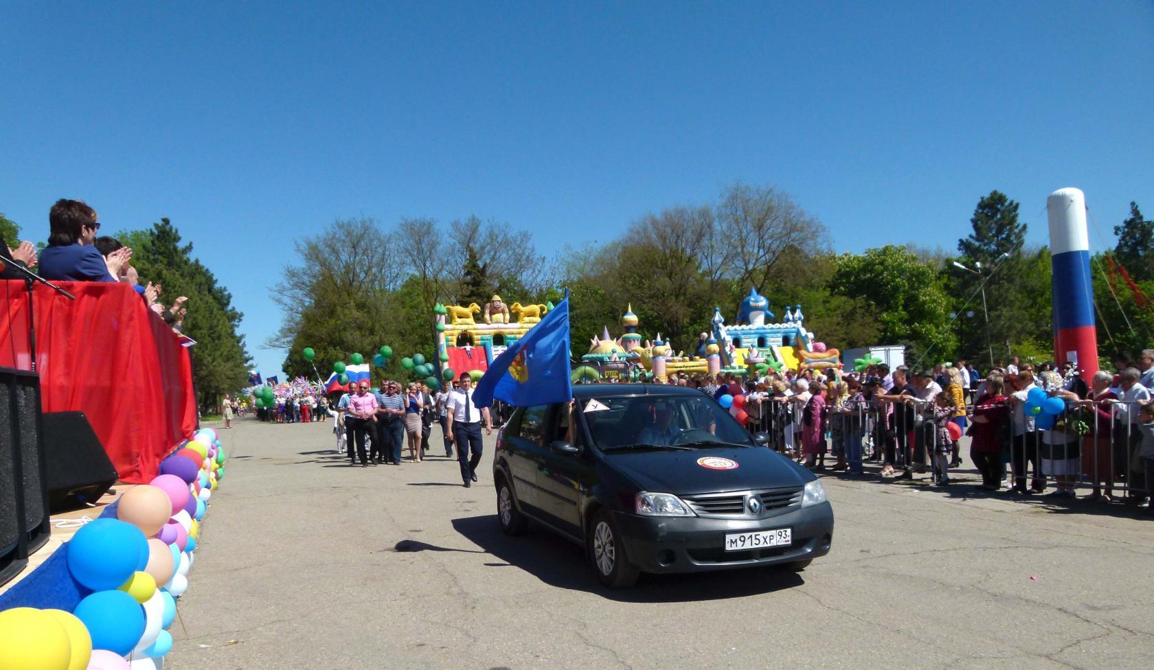 В праздничной демонстрации принял участие коллектив Местного отделения ДОСААФ России Щербиновского района Краснодарского края. Из репортажа: «Местное отделение ДОСААФ Щербиновского района Краснодарского края образовано в 60- годы двадцатого столетия. Его основными целями являются содействие укреплению обороноспособности страны в организации и проведении военно-патриотического воспитания граждан, развитии авиационных, технических и военно-прикладных видов спорта, технического творчества молодёжи, подготовка граждан по военно-учётным специальностям, специалистов массовых технических профессий. Для выполнения этих задач Местное отделение ДОСААФ России Щербиновского района Краснодарского края располагает необходимой материально-технической базой, опытными преподавателями и мастерами производственного обучения, тесно взаимодействует с органами власти. Председатель Александр Валерьевич Даценко. С его приходом улучшилась материально-техническая база – постепенно обновляется технический парк организации, эффективно функционирует автодром. Старожилы организации: преподаватели Игорь Анатольевич Сергиенко, Александр Антонович Лозинский; мастера производственного обучения Андрей Аркадьевич Шепелев, Владимир Анатольевич Вивчарь, Юрий Юрьевич Поддубный, Игорь Юрьевич Тицкий».