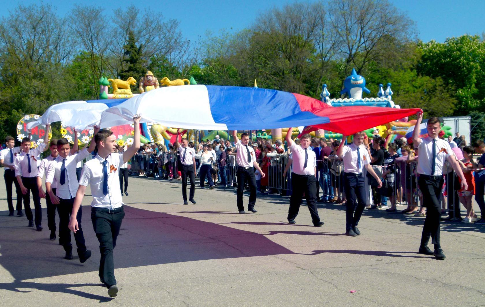 В канун Великой Победы, глава района выразил особую благодарность ветеранам фронта и тыла, ратный и трудовой подвиг которых обеспечил независимость нашей Родины, возможность встречать Первомай в мирной стране. Ведущие праздничного шествия представили каждую из колонн, отмечая их успехи и вклад в развитие района.