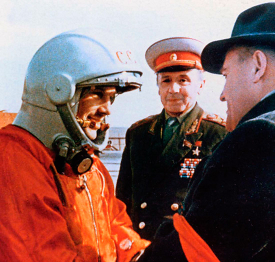 12 апреля 1961 г. С. П. Королёв снова поразил мировую общественность. Создав первый пилотируемый космический корабль «Восток-1», он реализовал первый в мире полёт человека в космос — гражданина СССР Юрия Алексеевича Гагарина — по околоземной орбите. Сергей Павлович в решении проблемы освоения человеком космического пространства не спешил. Первый космический корабль сделал только один виток: никто не знал, как человек будет себя чувствовать при столь продолжительной невесомости, какие психологические нагрузки будут действовать на него во время необычного и неизученного космического путешествия.