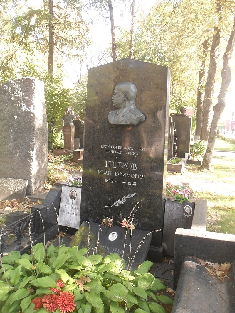 Иван Ефимович Петров (родился 18 сентября 1896 г., в г. Трубчевск, Орловская губерния, умер 7 апреля 1958 в г. Москва), советский военачальник, генерал армии (1943, 1944). Герой Советского Союза (1945).