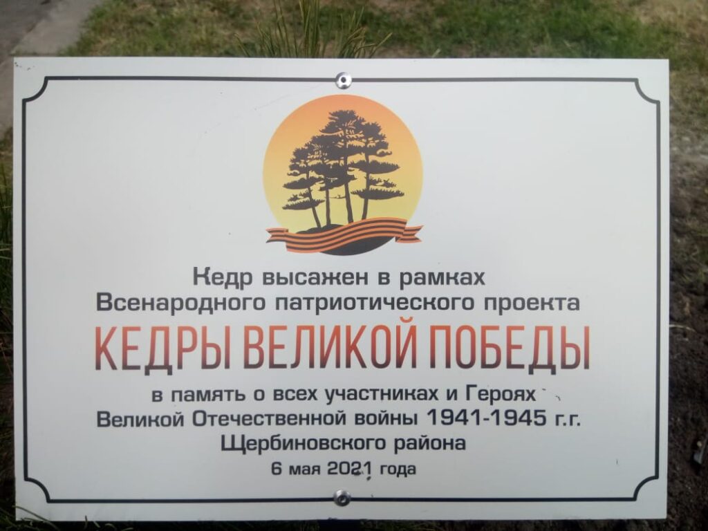 Теперь в городе-герое Новороссийске будет расти кедр с символикой «Кедры Великой Победы в память обо всех участниках и героях Великой Отечественной войны 1941-1945 годах Щербиновского района».