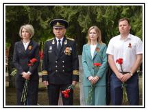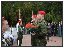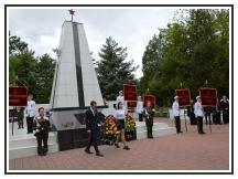 В возложении участвовали члены коллектива Местного отделения ДОСААФ России Щербиновского района: завуч по учебной работе Елена Леонидовна Ислентьева и преподаватель Александр Антонович Лозинский.