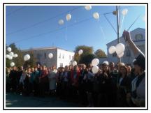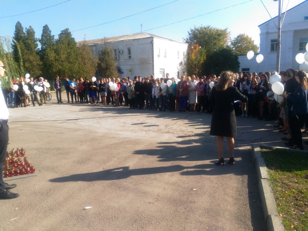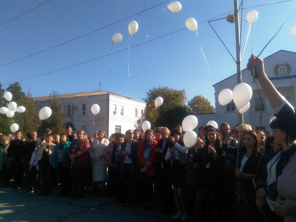 На центральную площадь станицы Старощербиновская вышли люди со свечами, цветами и шарами. Щербиновцы зажгли в лампадках огни, возложили цветы и выпустили в небо белые шары.