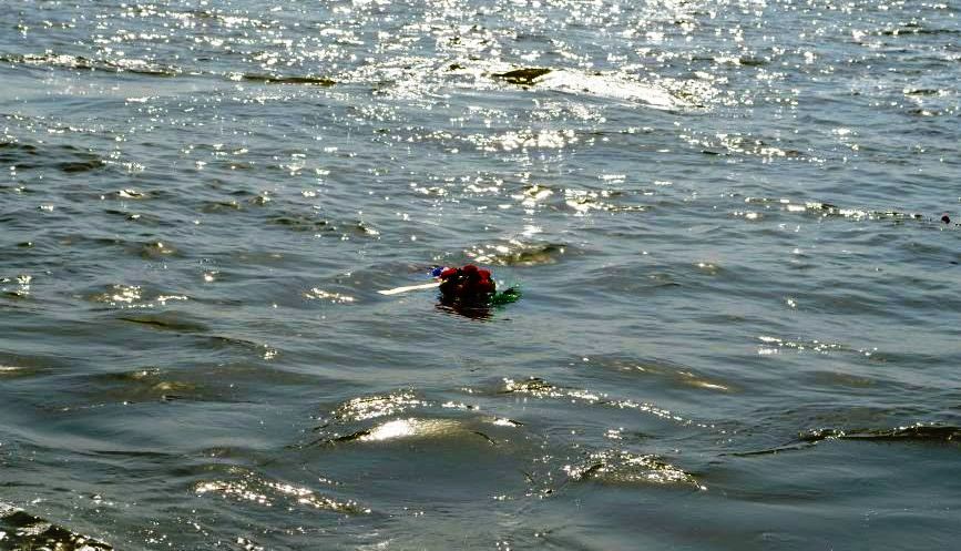 Все присутствующие почтили память погибших в авиакатастрофе минутой молчания. После чего на воду был спущен венок и цветы.