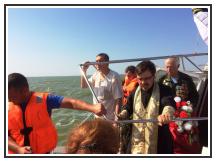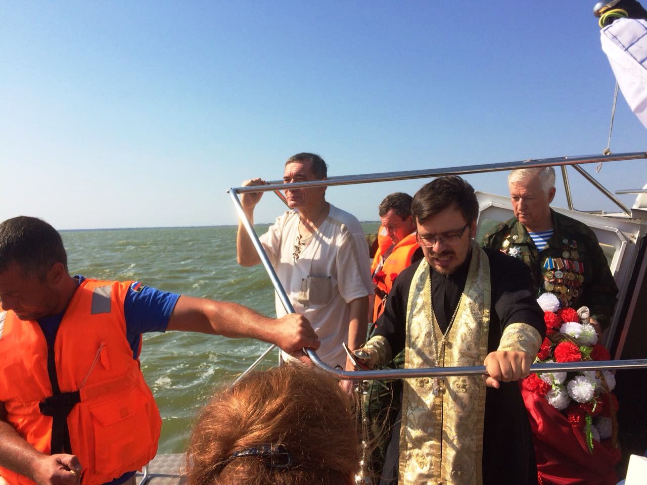На место катастрофы АН-12 в море вышли на катерах МЧС. Штатный священник Свято-Введенского храма города Ейска иерей Евгений Улезько совершил заупокойную литию по погибшим.