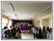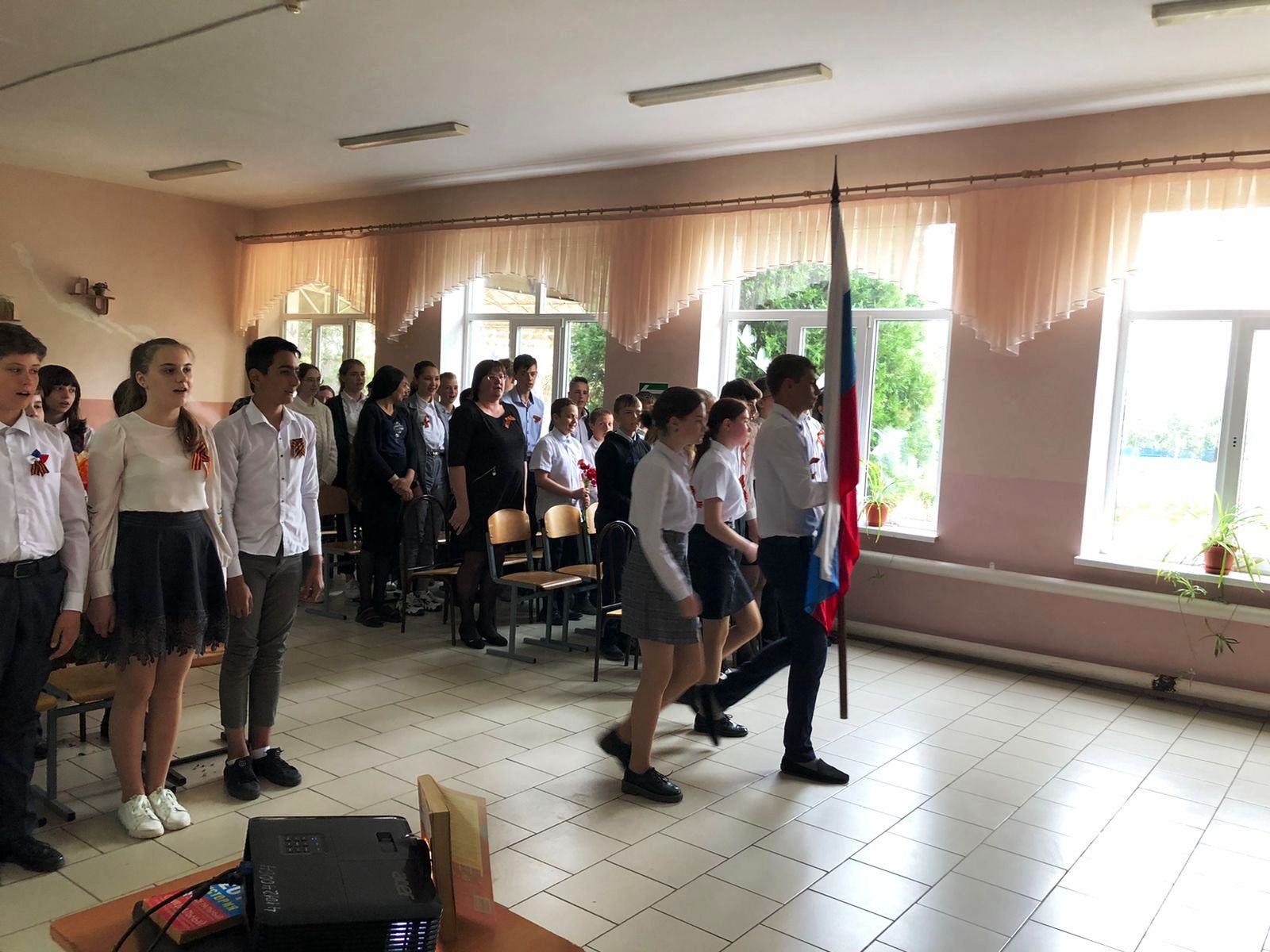 Урок мужества начался с вноса флагов России и Краснодарского края и исполнения гимнов.