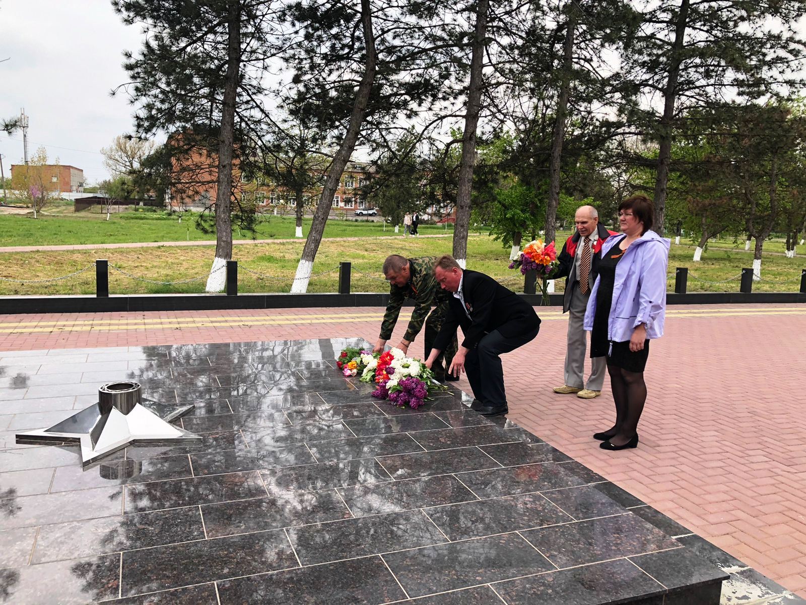 Заключительным моментом встречи стало памятное фото и возложение цветов погибшим в ВОВ.