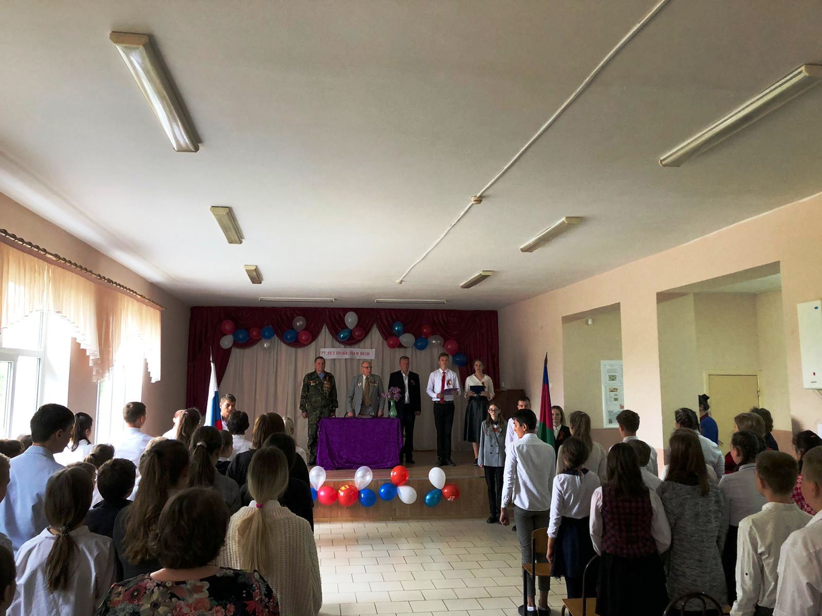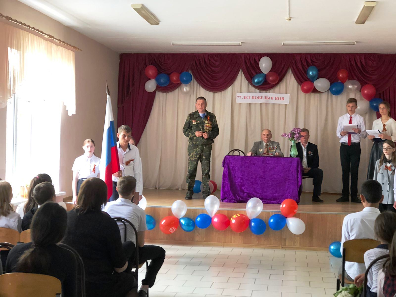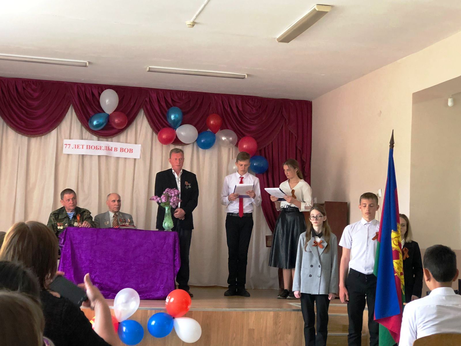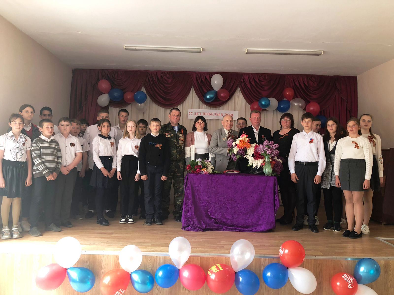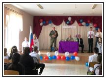 4 мая 2022 года, в преддверии Дня Победы, в МБОУ СОШ № 7 им. Г.Т. Ткаченко с. Ейское Укрепление (директор Кузнецова А.А.) состоялся Урок Мужества «Слава дедов – в орденах внуков» для учащихся 5-8 классов с ветеранами локальных войн и конфликтов, представителями трех поколений защитников Отечества - Великой Отечественной, Афганской и Чеченской войн.