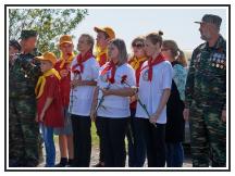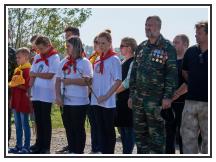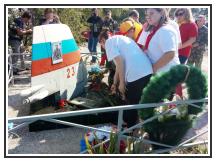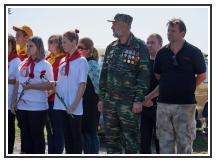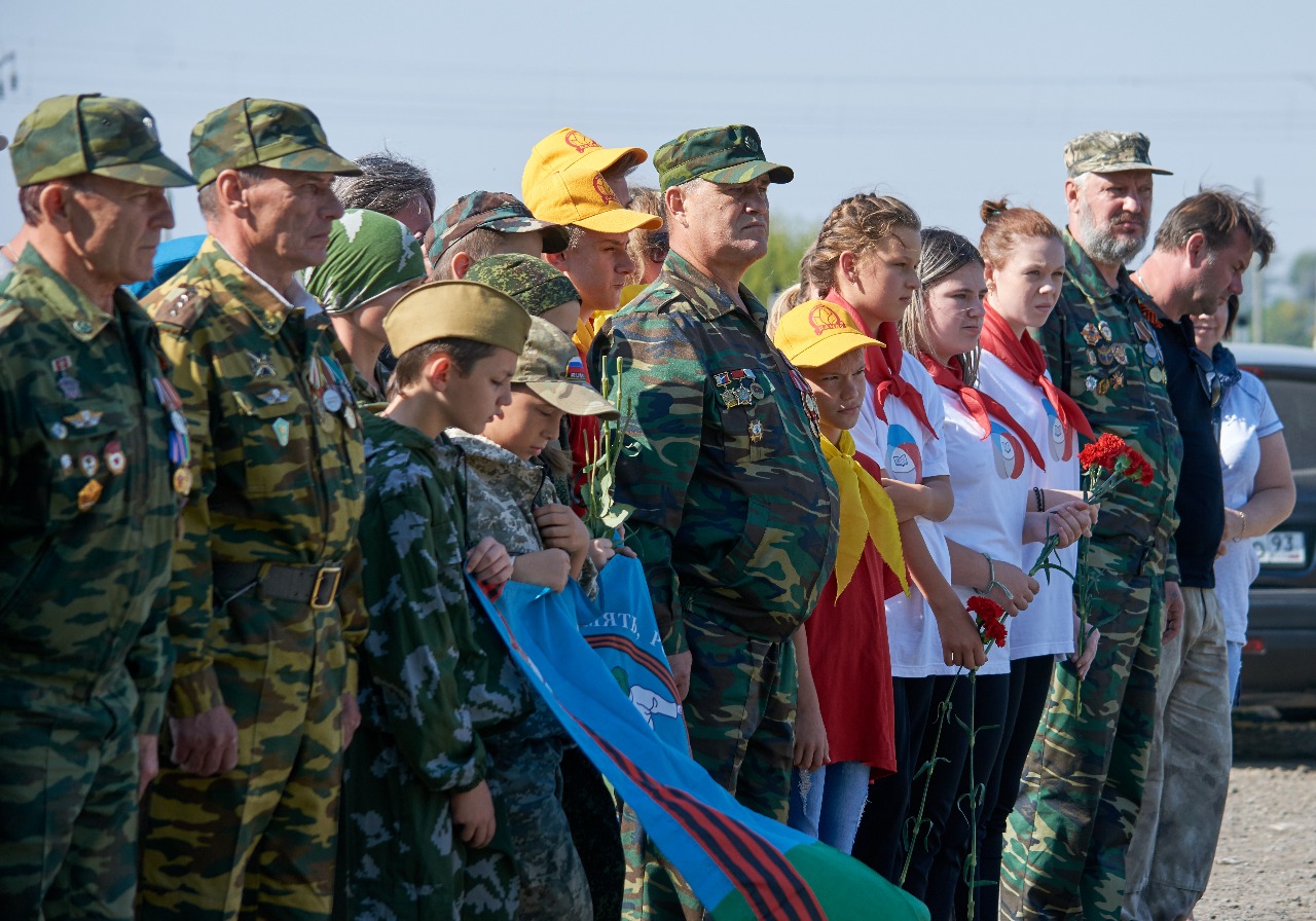 Доклад майора военного лётчика 1 класса, ветерана боевых действий в Афганистане, Абхазии и Чеченской республике, участника операции по освобождению детей, захваченных вооружёнными террористами в городе Ростове на Дону в 1993 году, руководителя «Боевого братства» Ейского района и города Ейска Ф.Ф. Шайхулина о построении принимал руководитель Краснодарского краевого отделения Всероссийской общественной организации ветеранов «Боевое братство» полковник Ярко Валерий Сергеевич. На построении у памятного знака равнение на знамя держали родные и близкие капитана Алексея Назарова, представители общественной организации «Боевое братство» Ейского, Каневского, Шербиновского, Славянского, Староминского районов, воспитанники военно-патриотического клуба «Гвардеец» ст. Староминской, делегация лицея № 4 имени профессора Е.А. Котенко г. Ейска, ветеран службы внешней разведки КГБ СССР, ветеран военной службы, полковник в отставке Лисицын М.И., заместитель председателя Местного отделения ДОСААФ России Щербиновского района Краснодарского края, начальник штаба «Боевого братства» Щербиновского района М.Н. Кротенко, командование и личный состав штурмового авиационного полка г. Приморско – Ахтарска, жители ст. Новоминской и Каневского района. На митинге памяти капитана Назарова выступили руководитель «Боевого братства» Староминского района, сержант запаса войск специального назначения ГРУ Владимир Шамраев; руководитель «Боевого братства» Красноармейского района, подполковник, кавалер ордена «Мужества» Александр Суфрадзе; руководитель «Боевого Братства» Щербиновского района, участник всех локальных войн на территории Кавказа, старший прапорщик запаса Андрей Шпаковский; руководитель «Боевого Братства» Славянского района, полковник запаса Александр Пантелеев. Обращаясь к молодёжи, ветераны говорили о любви к Родине, об ответственности каждого за судьбу Отечества, призывали будущих воинов воспитываться на примере подвигов земляков, совершённых в годы войны и в мирное время. Отец Анатолий отслужил панихиду на месте трагедии и благословил присутствующих. Все присутствующие почтили память погибшего в авиакатастрофе Алексея Назарова минутой молчания. После чего были зажжены дымовые сигнальные огни, к памятному знаку были возложены живые цветы.