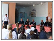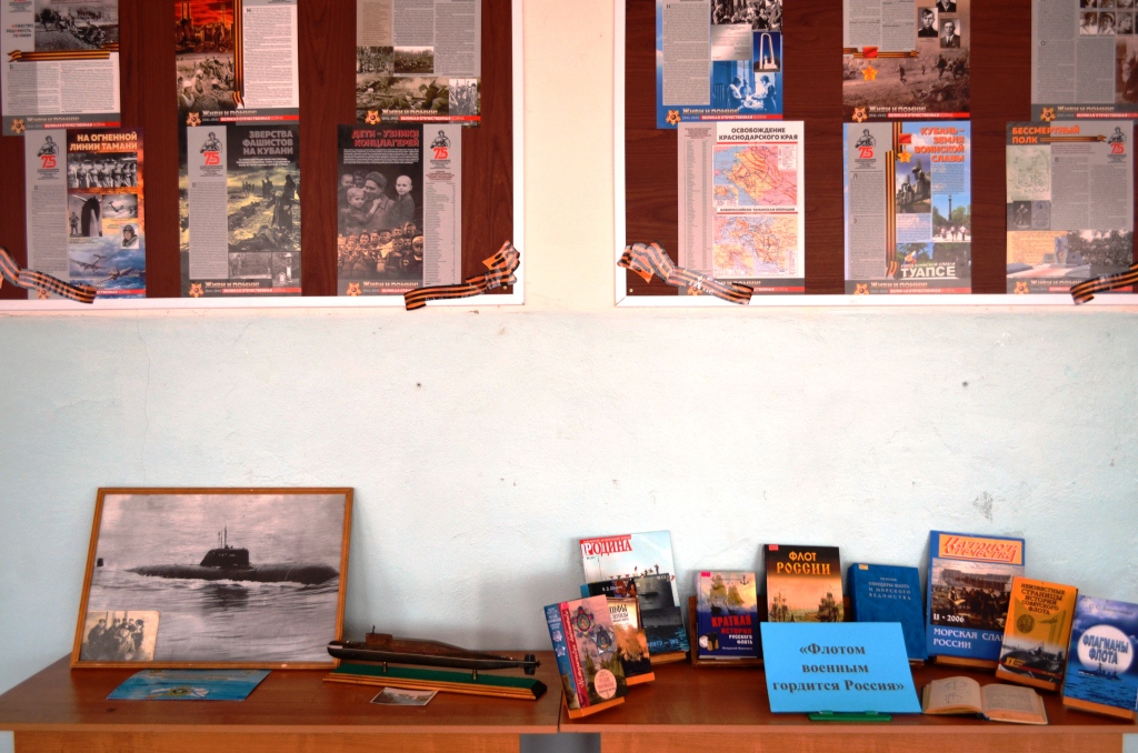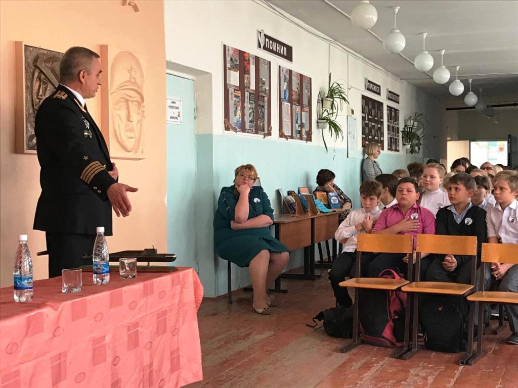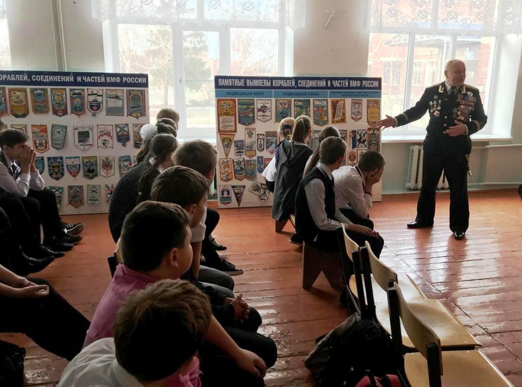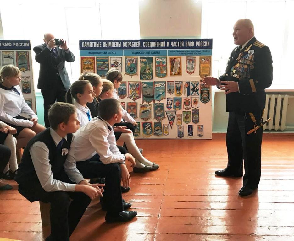 Заместитель председателя ДОСААФ Марина Кротенко закончила Урок словами Адмирала Егорова. «По моему мнению, (Адмирал в период с 1977 по 1981 годы занимал пост начальника Главного штаба первого заместителя главнокомандующего Военно-Морским Флотом, примечание М. Кротенко), риторика и политика сути дела не меняет. Сильным флот должен оставаться всегда. Партнеры и политики приходят и уходят, а интересы страны остаются». С выставкой книг «Флотом военным гордится Россия» в Уроке Мужества приняла участие МКУ «Межпоселенческая централизованная библиотека». Вымпела кораблей, соединений и частей ВМФ из личной коллекции предоставил Буглак Алексей Григорьевич.