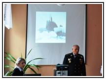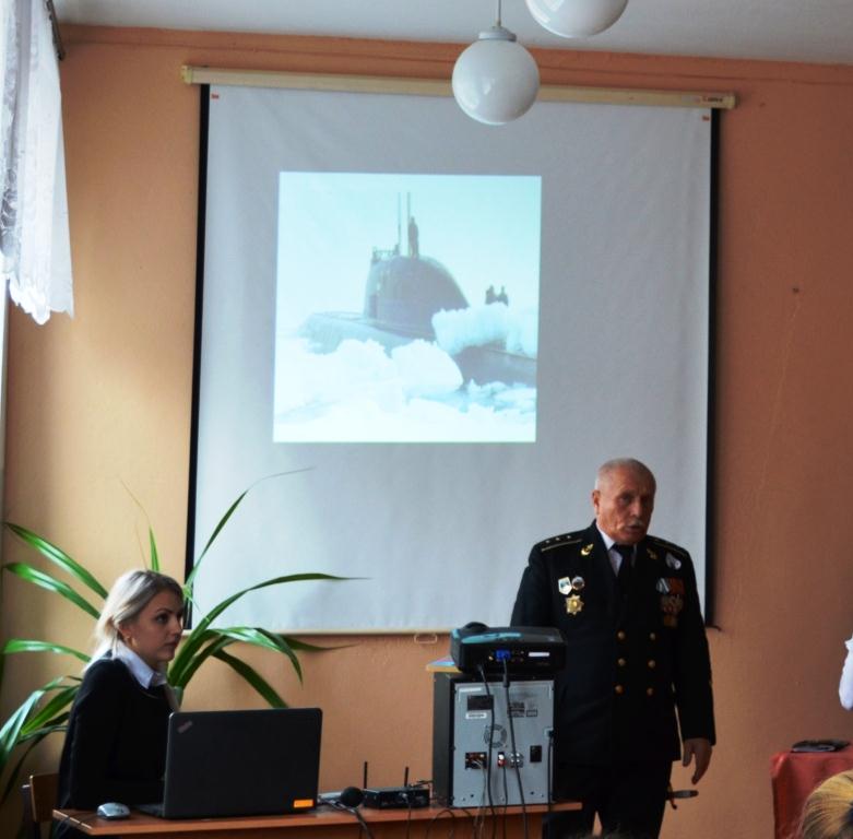 Вишняков Вячеслав Игоревич, старший мичман, подводник, служил на Северном флоте. Вячеслав Игоревич проходил службу при Адмирале Егорове. Он показал презентацию с фотографиями своей «дорогой и любимой» атомной подводной лодки К – 306, рассказал несколько интересных случаев из своей службы.