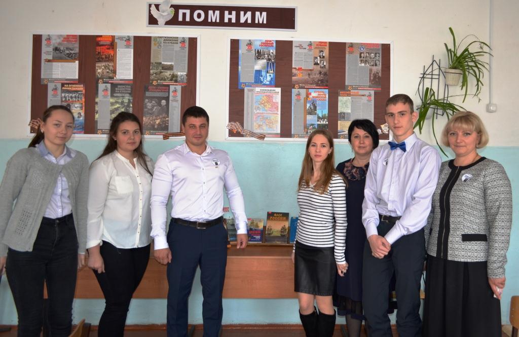 Глава Старощербиновского сельского поселения Подолянко Владимир Григорьевич, капитан 2 ранга запаса, ветеран подразделения особого риска. Служил на атомном подводном ракетном крейсере стратегического назначения с 1982 по 1997 гг. Его подводная лодка единственная в мире выпустила 16 баллистических ракет одновременно с подводного положения. Экипаж был награжден Орденом «За службу в Вооруженных силах СССР» 3 степени. Владимир Григорьевич показал точный макет своей подводной лодки в масштабе 1:2000, рассказал много интересных моментов из своей службы. Ответил на множество вопросов детворы.