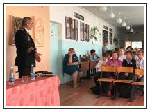 Александр Валерьевич поблагодарил почетных гостей и директора МБОУ СОШ № 5 Гуро Ольгу Алексеевну за теплый прием.