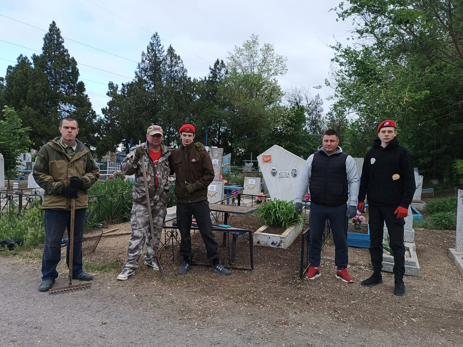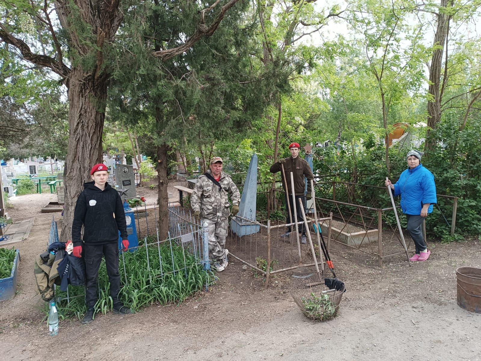 В ходе субботника вырвана трава, собран и вывезен мусор и сухостой, а также произведена обрезка дикорастущей поросли. В субботнике приняли участие председатель ДОСААФ Александр Даценко и заместитель Марина Кротенко, Юнармейцы Юрий Море и Данила Соколов, члены Боевого Братства Щербиновского района Евгений Море и Игорь Лабутин. На следующих выходных покрасим могилы и ограждения, поставим цветы, повесим георгиевские ленты! От помощи не откажемся!