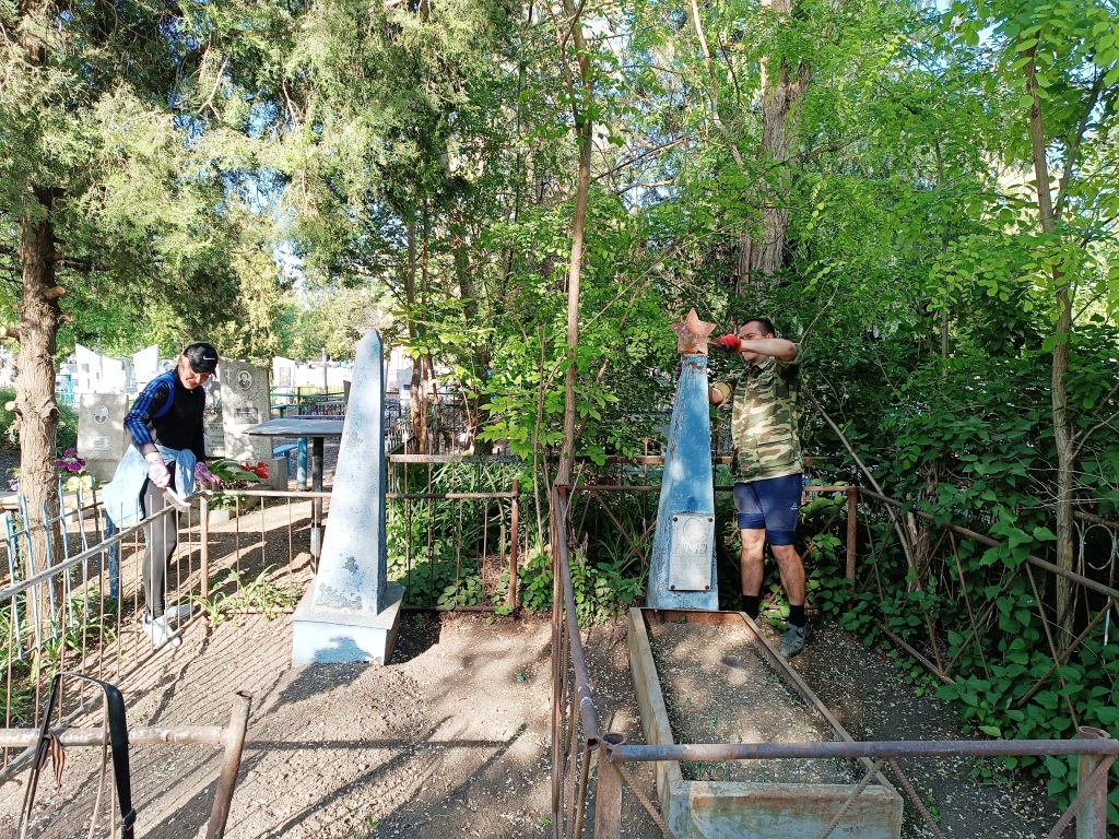 В преддверии Дня Победы активисты Местного отделения ДОСААФ России заместитель председателя Марина Кротенко и завуч Алла Рожина, а так же секретарь РК КПРФ, член Боевого Братства ЩР Игорь Лабутин продолжили уборку на захоронениях красноармейцев, покрасили надгробия, ограды, звезды, поставили цветы.