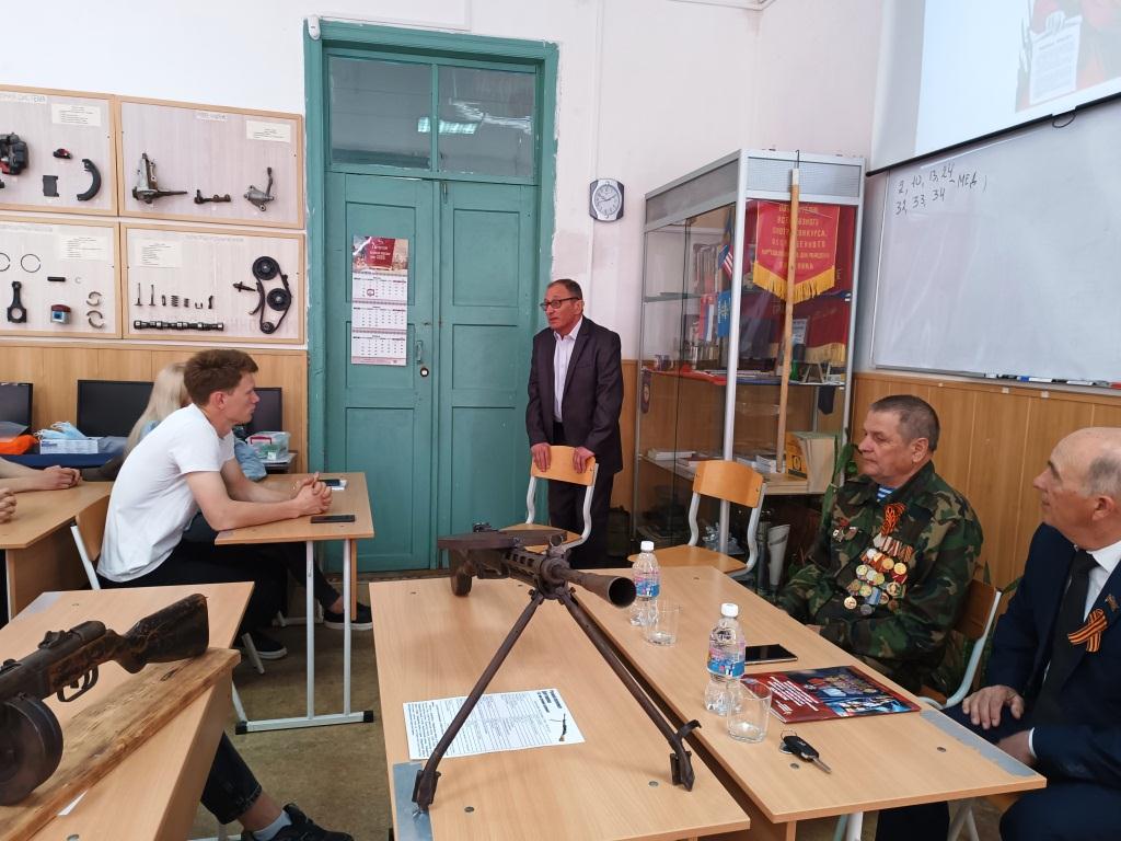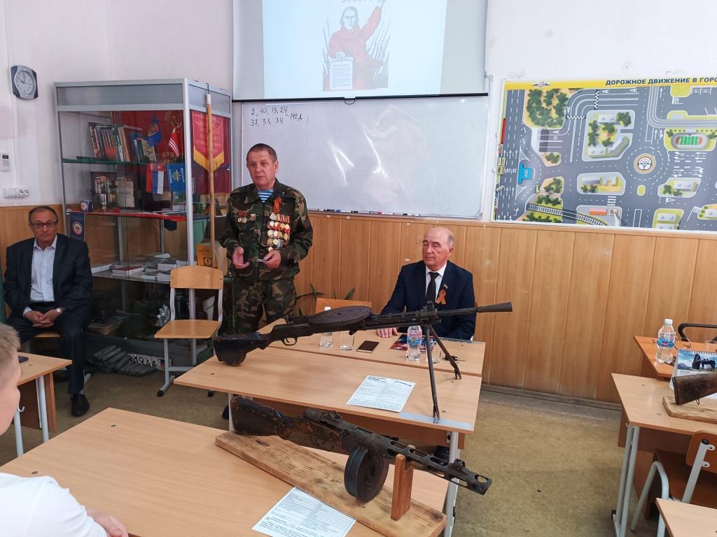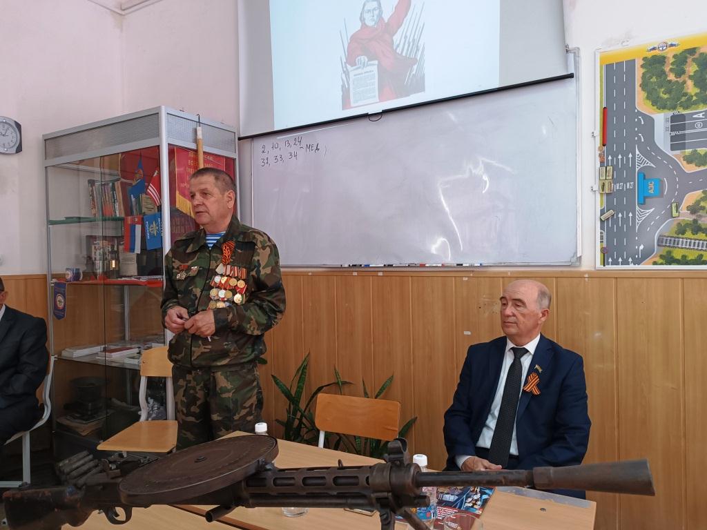 На Уроке присутствовали почетные гости председатель Совета муниципального образования Щербиновский район Михаил Николаевич Кряжов; председатель первичной ветеранской организации ветеранов Афганской войны Василий Владимирович Котенко; кадровый офицер, воин – афганец, преподаватель МО ДОСААФ России Щербиновского района Игорь Анатольевич Сергиенко; председатель Александр Валерьевич Даценко.