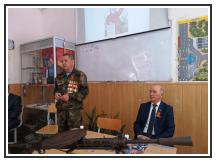 Котенко В.В. поделился воспоминаниями о службе в Афганистане, о долгих и опасных дорогах в горах, как помогали друг другу в тяжелейших испытаниях, о том, что некоторым нашим землякам не суждено было вернуться из Афганистана. Поделился некоторыми «секретами» профессионального мастерства из опыта срочной службы в Германии. Что бы ни говорили современные аналитики об Афганской войне, сегодня можно с полной уверенностью сказать, что советские солдаты честно и самоотверженно исполняли свой долг. Сотни тысяч воинов-афганцев с достоинством прошли жестокие испытания войной.