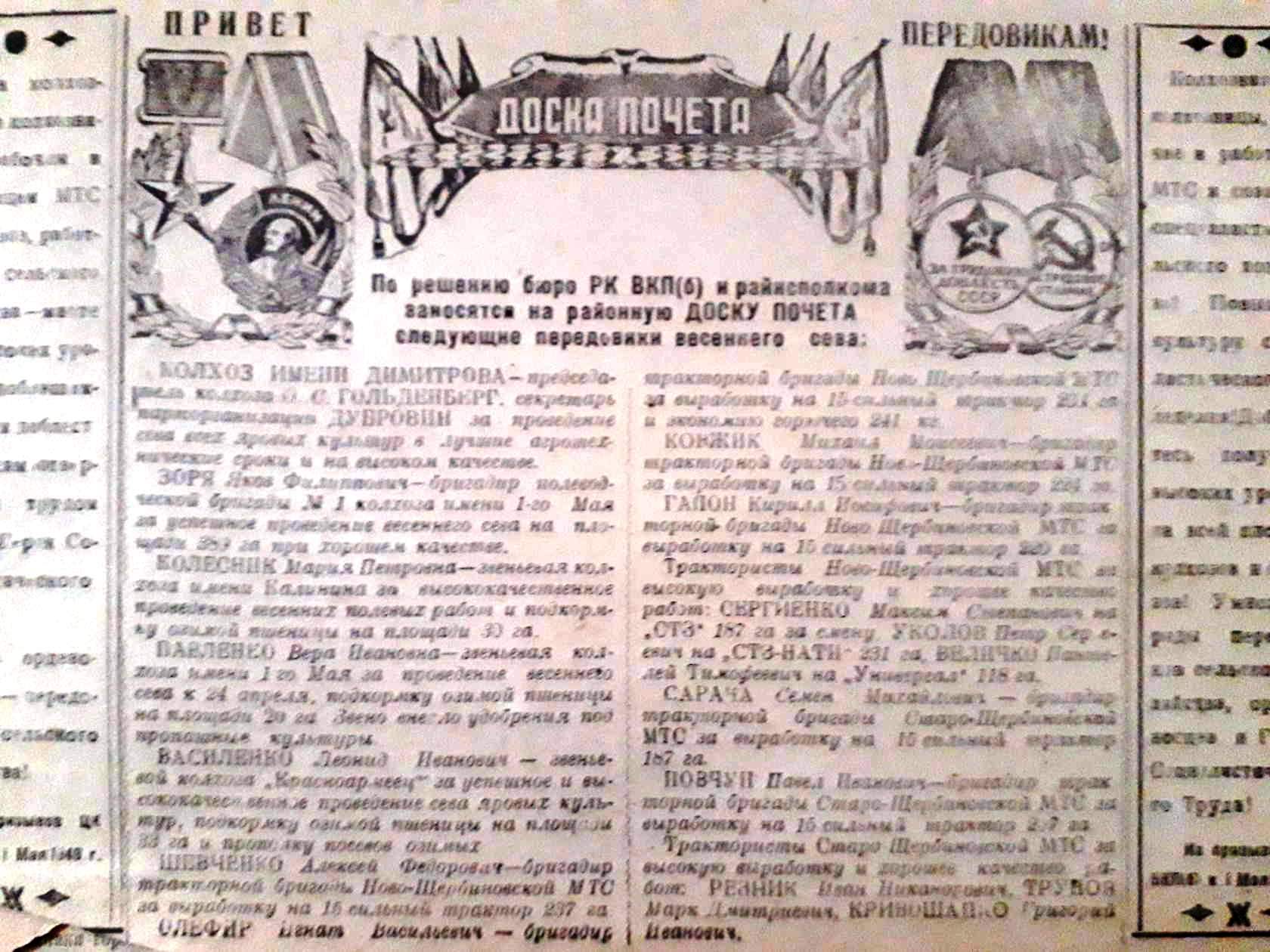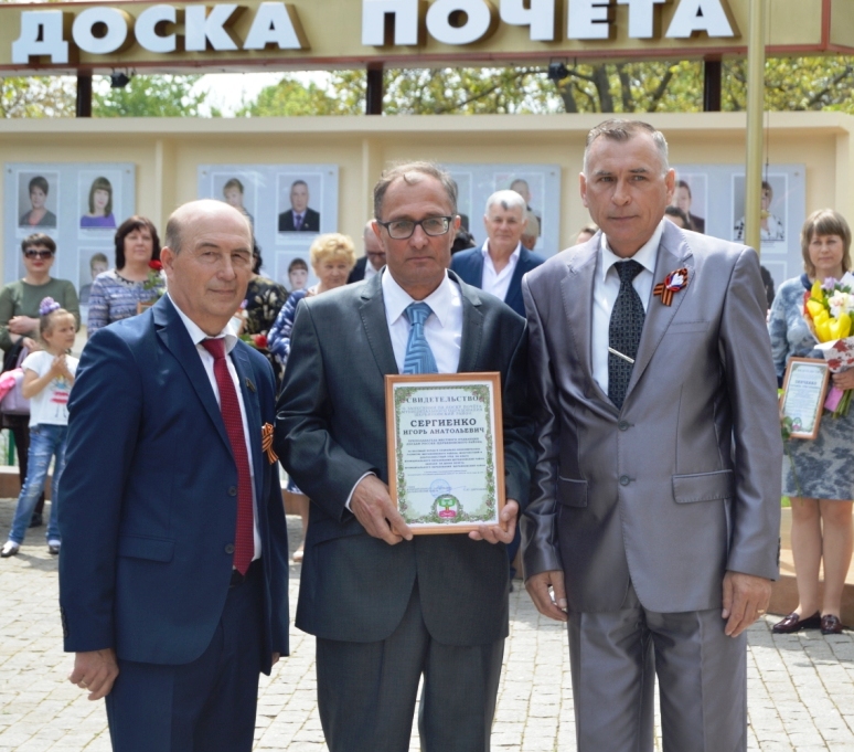 1 мая в станице обновили Доску Почёта Щербиновского района. «Все мы с вами знаем, что в нашем районе живут замечательные, душевные, беззаветно любящие свою Родину люди. Благодаря вашему трудолюбию, настойчивости, гордости за свою «малую Родину» наш район динамично развивается. Мы успешно решаем многие задачи и уверенно смотрим в будущее»,- в своём выступлении отметил глава района Сергей Цирульник. На районную Доску Почета занесены имена 48 представителей сельского хозяйства, образования, культуры здравоохранения, предприятий. Среди них и преподаватель Местного отделения ДОСААФ Щербиновского района Сергиенко Игорь Анатольевич. Это профессионалы высокого уровня, имеющие награды, заслуженный авторитет в своих коллективах, в районе. Объединяет их одно - любовь к своему делу и трудолюбие.