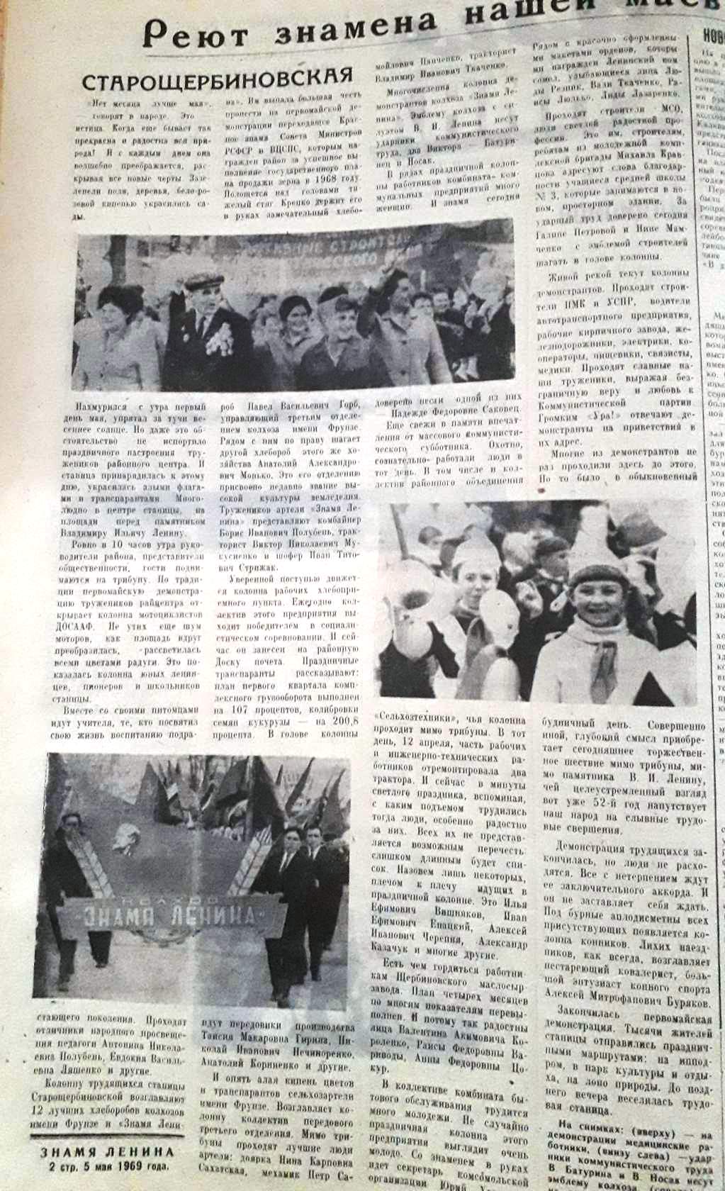 В числе почетных гостей праздника – заслуженные люди Щербиновского района, ветераны войны и труженики тыла, герои социалистического труда и орденоносцы, вписавшие не одну славную страницу в историю нашего района. Около 4 000 человек и более 50 трудовых коллективов приняли участие в праздничной демонстрации.