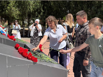 Траурные венки и цветы возложили ко всем мемориалам и памятникам воинам, погибшим в годы Великой Отечественной войны находящимся на территории Щербиновского района.