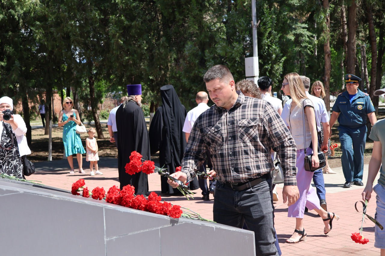 В станице Старощербиновской на мемориальном комплексе в честь земляков, погибших в годы гражданской и Великой Отечественной войн состоялось возложение венков и цветов в знак почтения к жертвам самой кровопролитной войны в истории Российского государства.