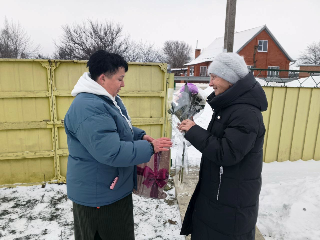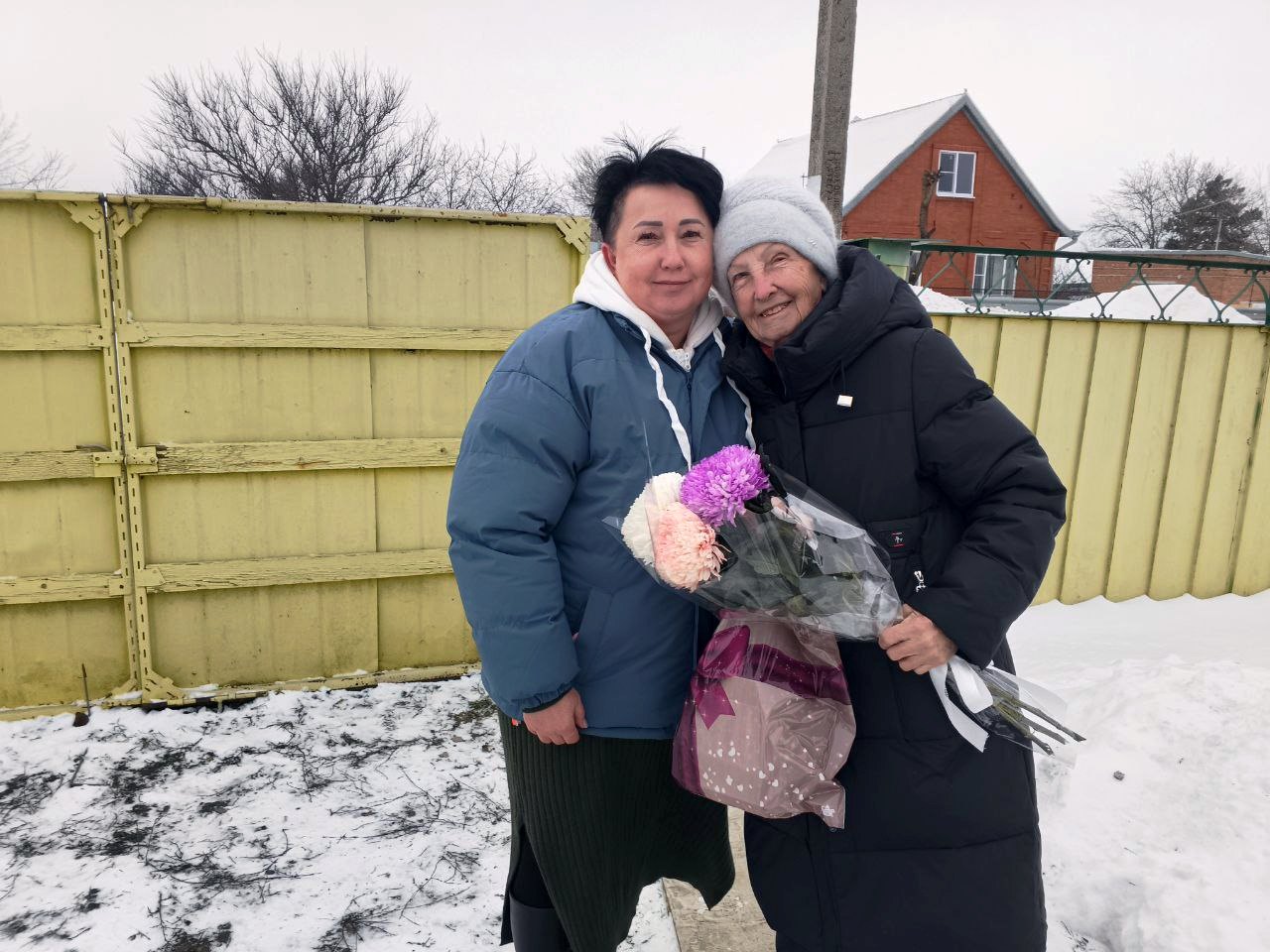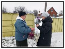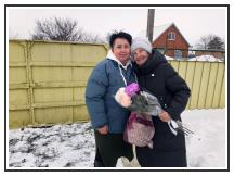 В Щербиновском районе проживает блокадница Валентина Семеновна Белоножкина. Заместитель председателя Местного отделения ДОСААФ России Щербиновского района Марина Кротенко и завуч Инна Мякшина поздравили блокадницу и вручили ей сладкие подарки и цветы.