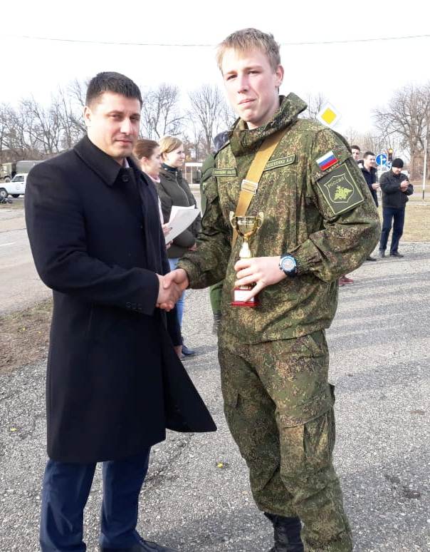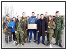 Второе место МБОУ СОШ № 7, село Ейское Укрепление. Приз – Кубок Председателя МО ДОСААФ и коробку солдатских сухпайков вручил председатель МО ДОСААФ Александр Даценко.