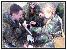 В ходе комбинированного кросса, дистанция которого 1500 м, ребята показали свои навыки в стрельбе, сборке - разборке автомата, снаряжении магазина, преодолении зараженного участка, прохождении препятствий, в оказании первой медицинской помощи и, самое главное, умение работать в команде, быть смелыми и дружными.