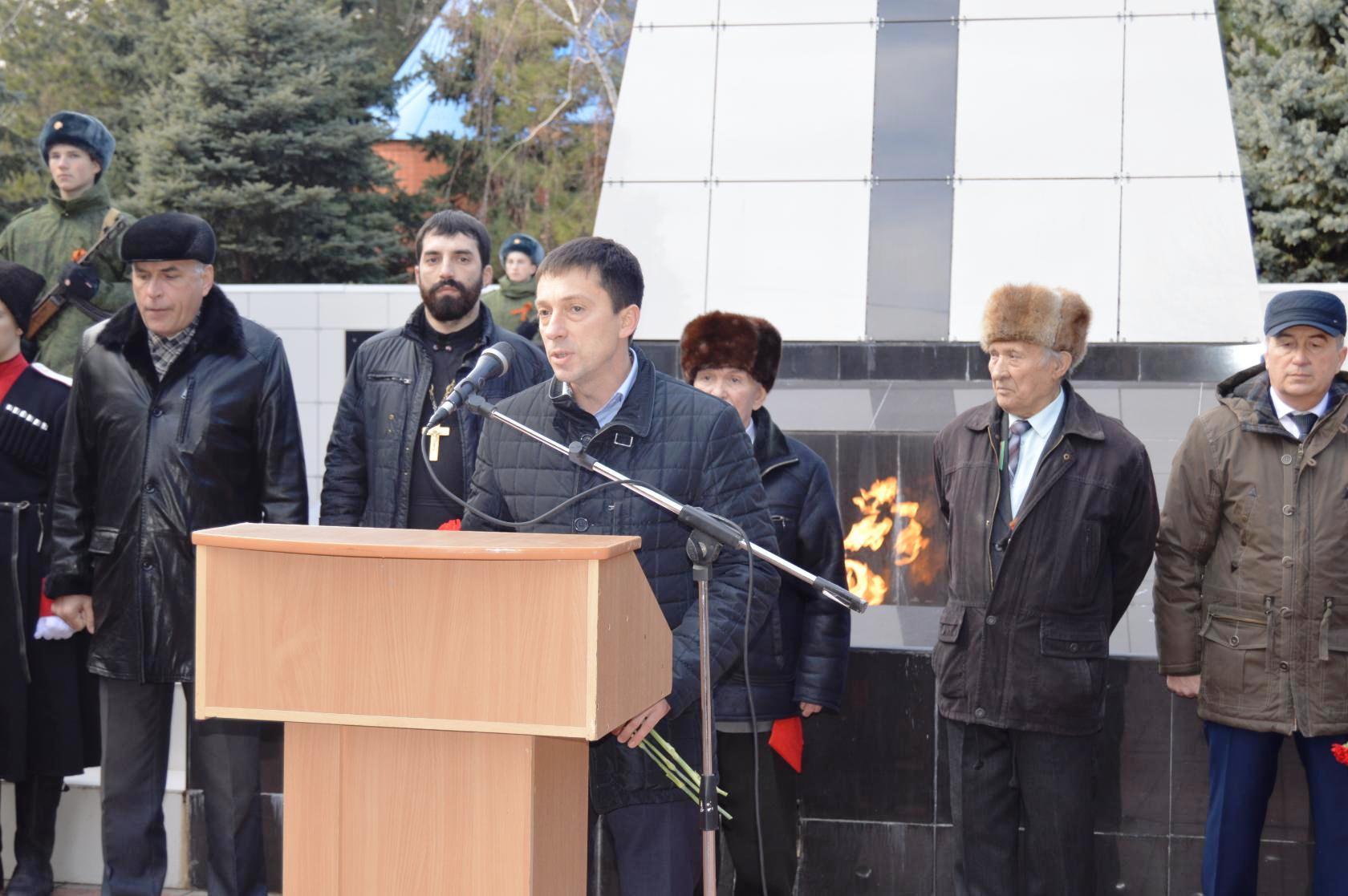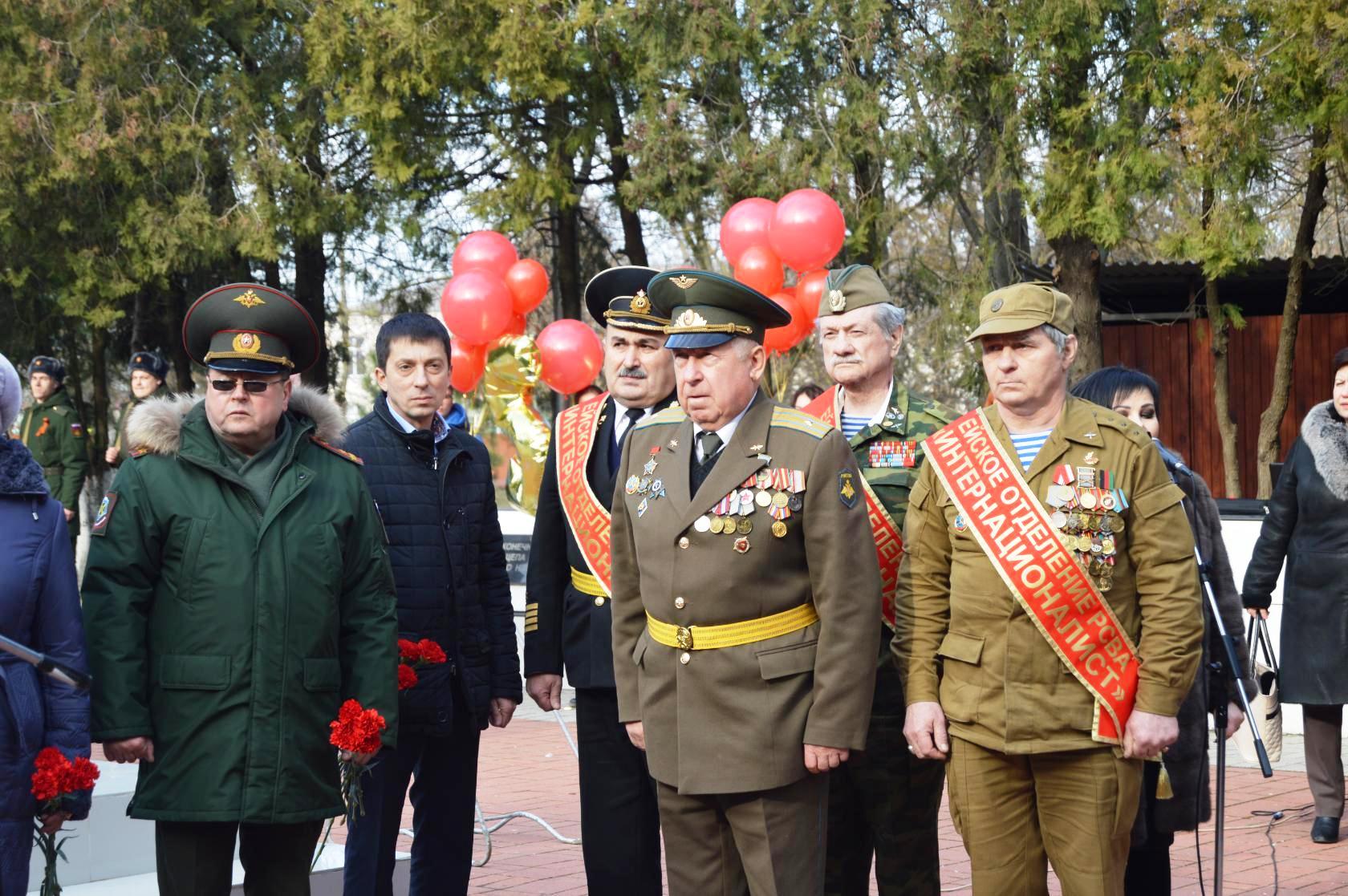 На митинге выступили: глава муниципального образования Щербиновский район С.Ю. Цирульник, председатель Совета муниципального образования Щербиновский район М.Н. Кряжов, заместитель председателя Щербиновского совета ветеранов Н.И. Коваль, депутат Законодательного собрания Краснодарского края 6-го созыва А.Ю. Хараман, священник храма Покрова Пресвятой Богородицы, клирик храма, иерей Виталий Гребешков, начальник отдела военного комиссариата Краснодарского края по Ейскому и Щербиновскому району Н.В. Кузьменко.