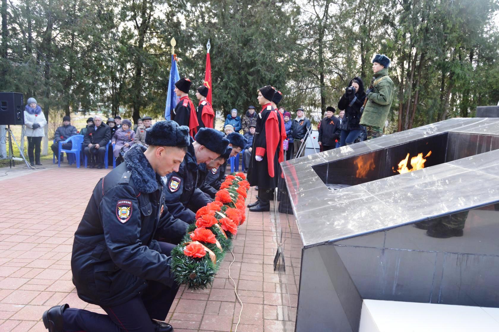 По традиции, в этот памятный день были возложены венки и цветы к мемориалу, как дань вечной памяти и уважения к героям, погибшим на войне. Председатель и заместитель председателя МО ДОСААФ Щербиновского района Краснодарского края возложили цветы на мемориал.