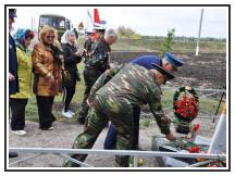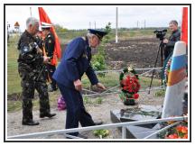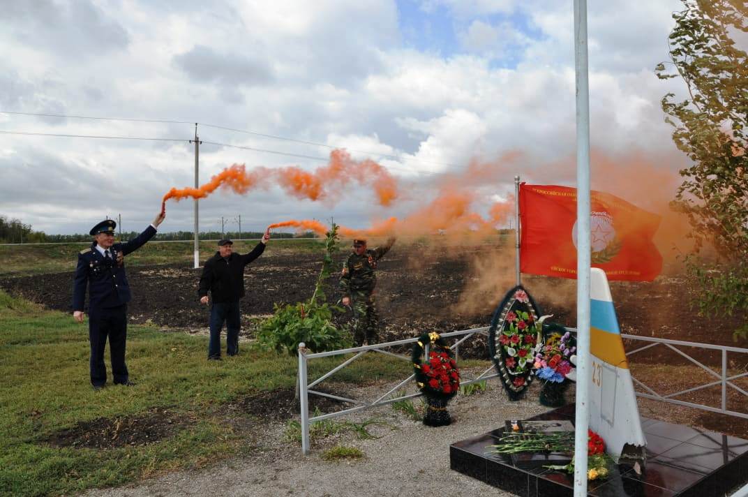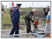 Все присутствующие почтили память погибшего в авиакатастрофе Алексея Назарова минутой молчания. После чего были зажжены дымовые сигнальные огни, к памятному знаку были возложены живые цветы и венки.