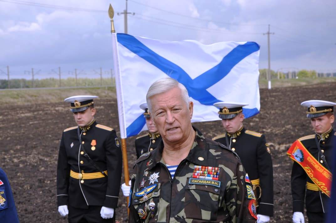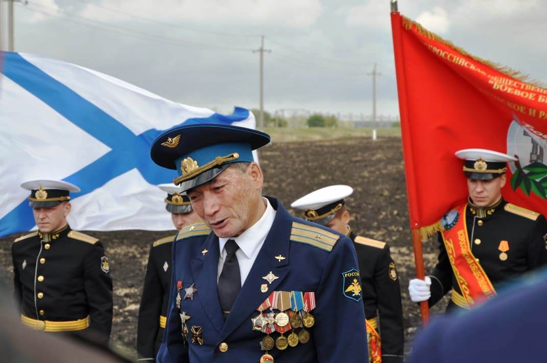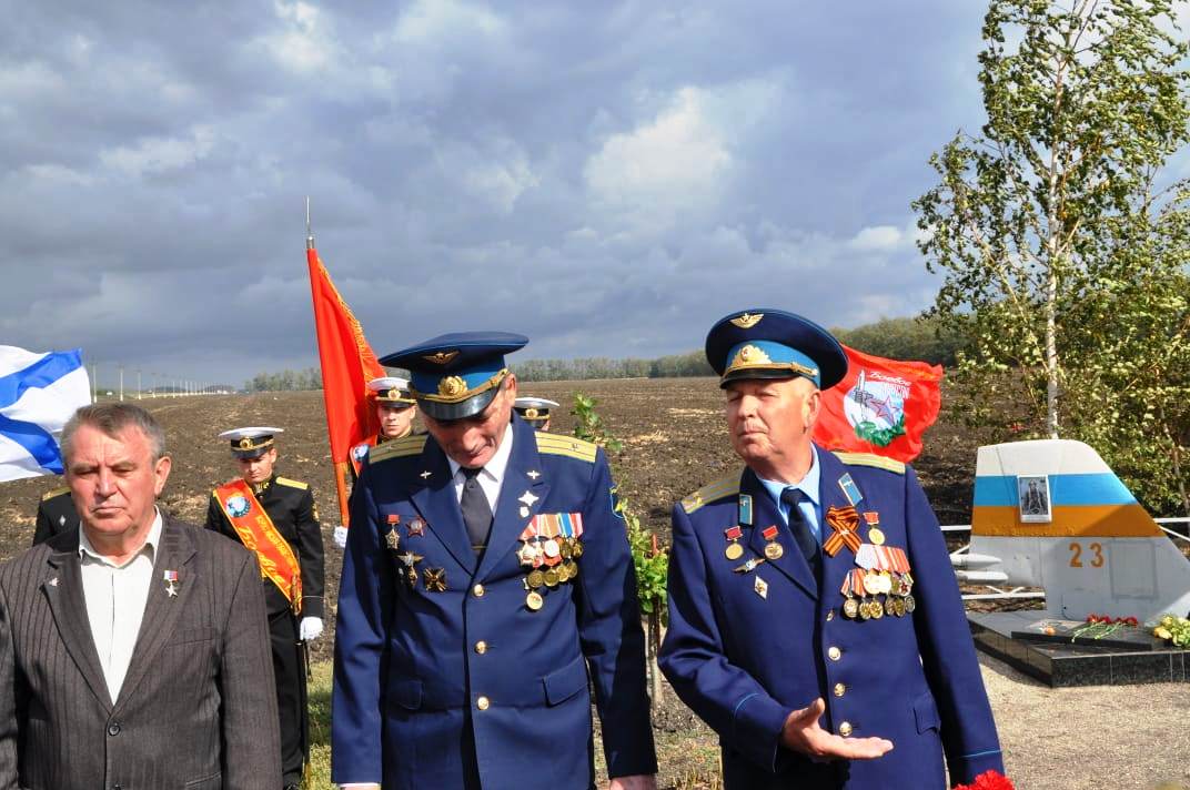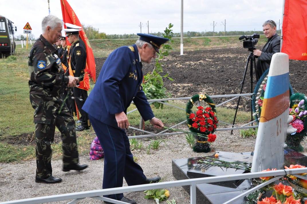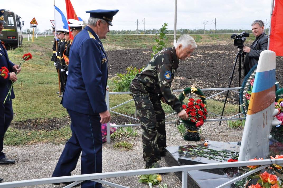 представитель Совета ветеранов Высшего военного авиационного летного училища полковник Борис Рыбалко; офицеры и личный состав Центра морской авиации ВМФ России, родные и близкие капитана, жители ст. Новоминской.