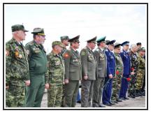 Доклад майора, военного лётчика 1 класса, ветерана боевых действий в Афганистане и Чеченской республике, участника операции по освобождению детей, захваченных вооружёнными террористами в городе Ростове на Дону в 1993 году, руководителя «Боевого братства» Ейского района и города Ейска Фината Шайхулина о построении принимал Герой России, заслуженный военный летчик России, генерал-майор Сергей Борисюк.