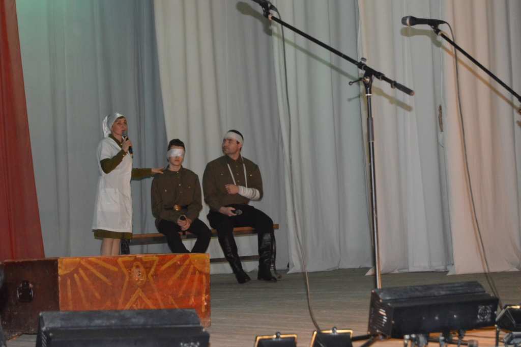 В холле ЦНТ развернулся блиндаж с музейными трофеями времен Великой Отечественной войны и материалами архивного отдела, тематические военные выставки представили отдел образования и библиотеки района. Волонтеры отдела молодежи с учащимися школ занимались разборкой и сборкой автоматов Калашникова, предоставленных МО ДОСААФ.