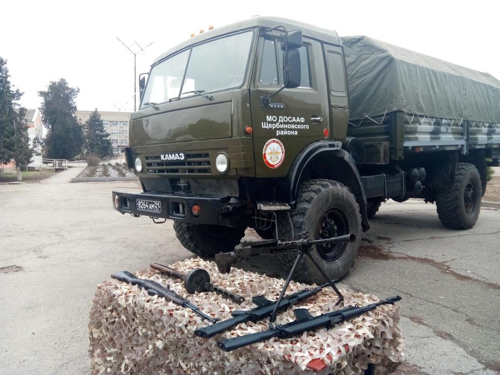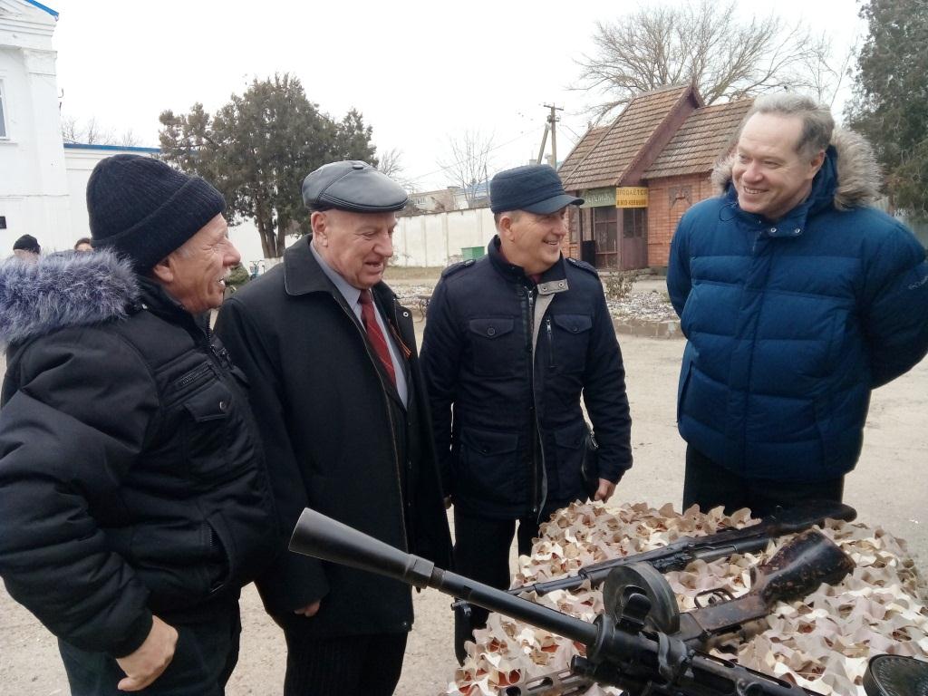 Началось мероприятие с выставки военной техники и оружия Местного отделения ДОСААФ России Щербиновского района Краснодарского края.