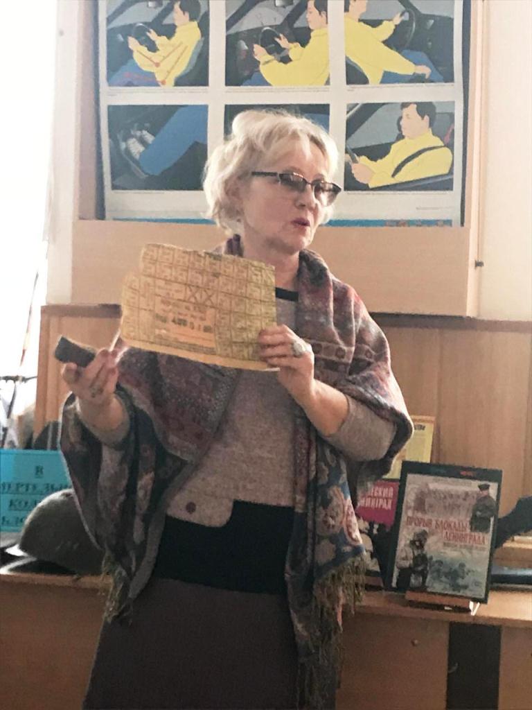 Шемендюк З.Н. подготовила книжно – предметную инсталляцию «900 дней мужества», на ней можно было увидеть насквозь пробитую осколком каску советского солдата, 125 – граммовую краюшку хлеба с копией хлебных карточек, а также книги про оборону и блокаду Ленинграда.
